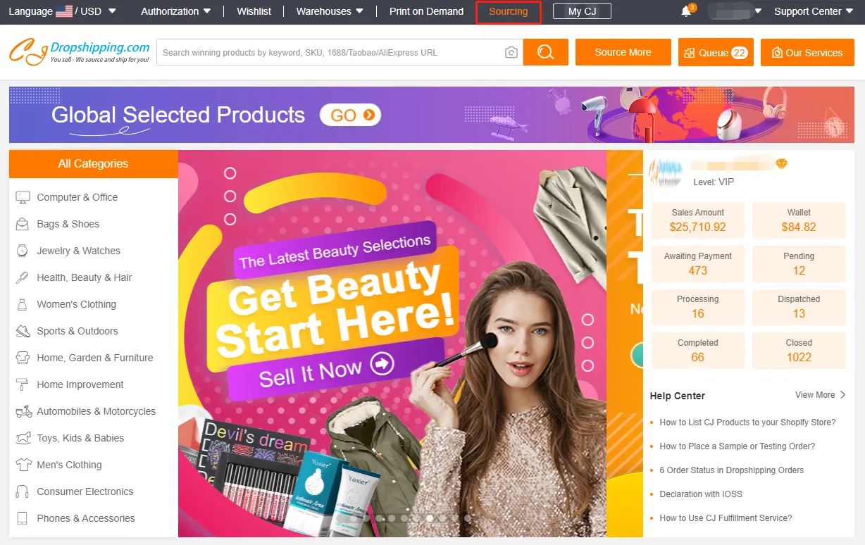 If you still don't find what you want to sell, here comes the efficient method–Sourcing. It allows you to put the product image, title, link for us, then our sourcing team will find it from our cooperated factory and publish it on CJ for you to sell.