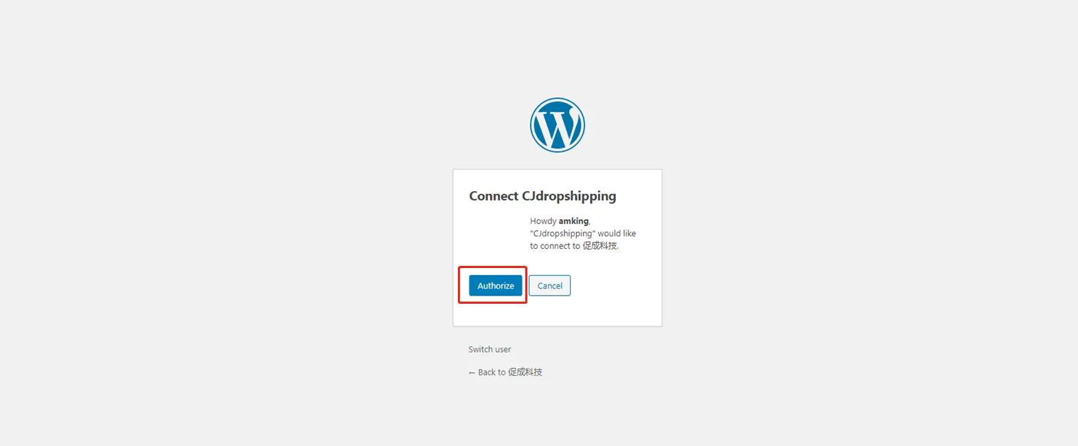 Then, go to the authorization page of WooCommerce on CJ.