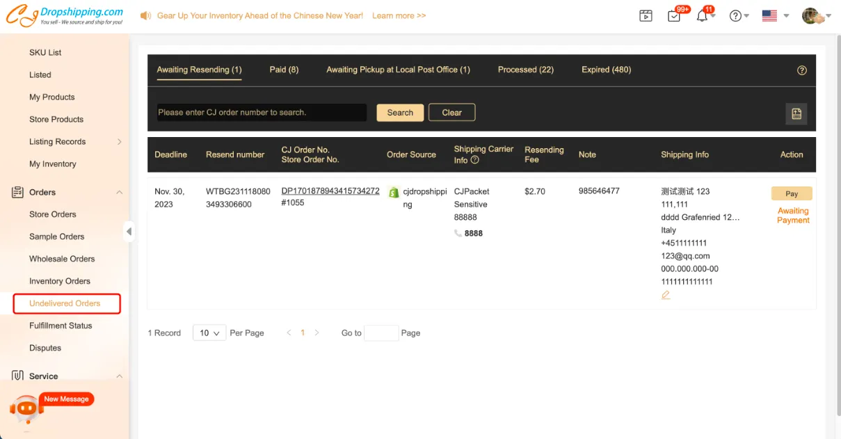 Last, you’re supposed to go to Orders > Undelivered Orders to fill in the requisite shipping information and pay before the deadline. In this way, we will resend the parcel to your customer after receiving the payment.