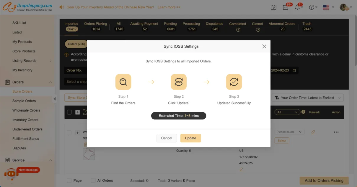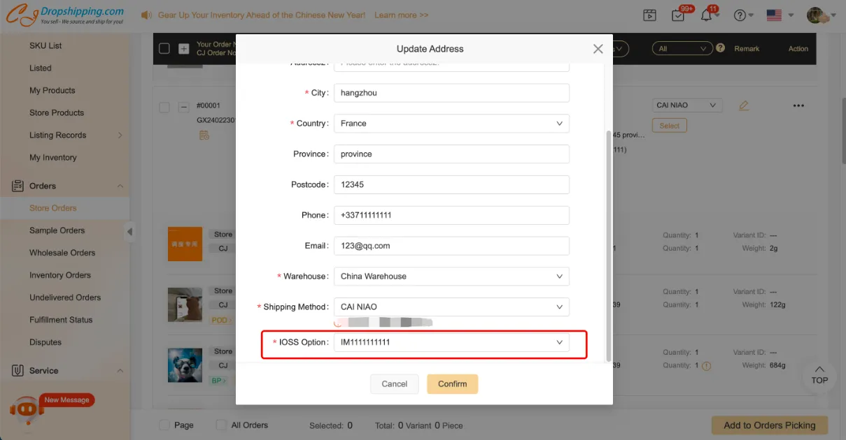 You can go to My CJ > Imported Orders/Cart > select orders > click "IOSS settings" to update the declaration amount (screenshots) when orders are synced to CJ.