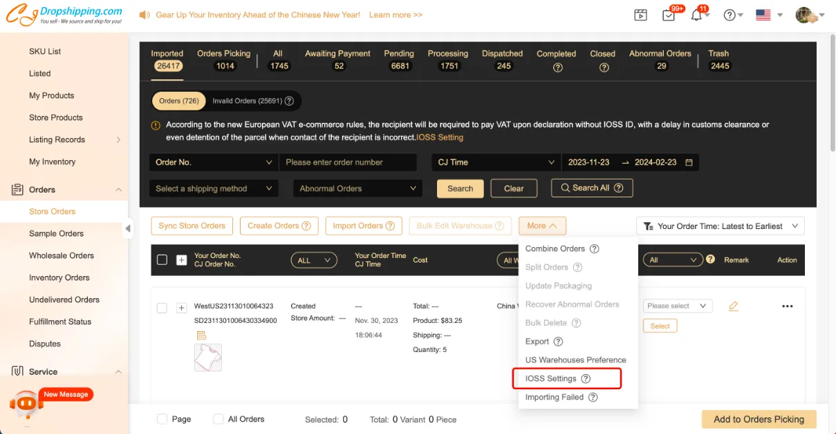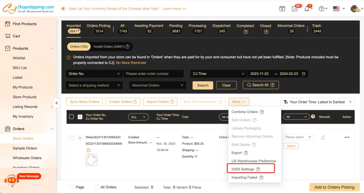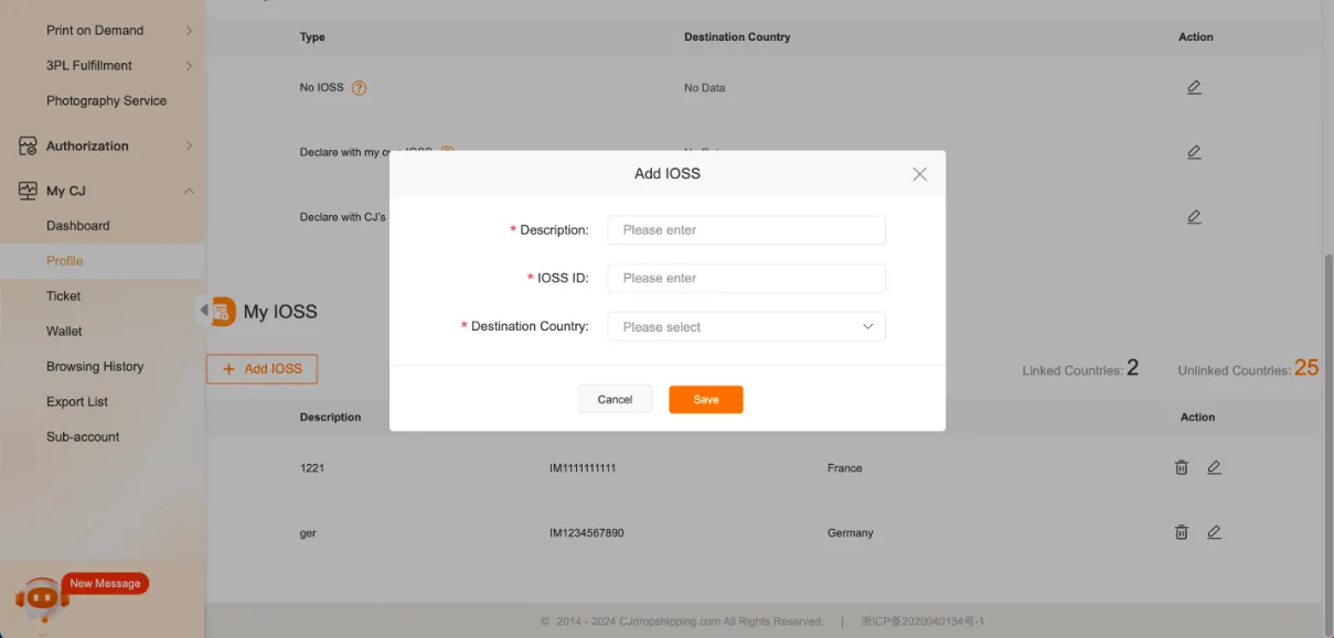 When you place orders manually or import orders by Excel and don't fill in the IOSS number, it will be applied as your setting in My CJ > Profile. If you want to change it, you can change the setting in Profile and click "IOSS Setting" to make it.