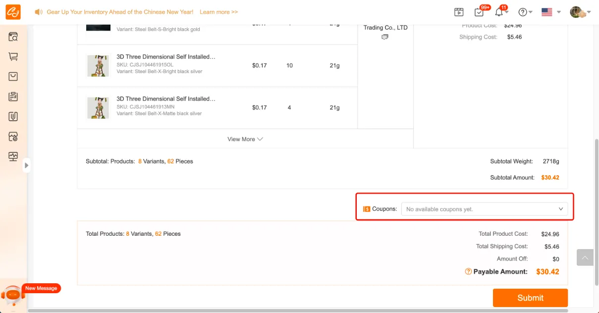 3. When multiple coupons qualify for one bulk order at the same time, the system defaults to select the one with the highest discount, which can be replaced at the check-out page.