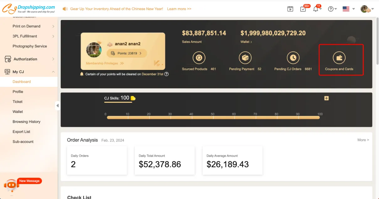 CJ always attaches great importance to our customer's experience on our platform and will keep making improvements for the benefit of our customers, which is partially the reason why we dole out coupons for each of our newly-registered customers.