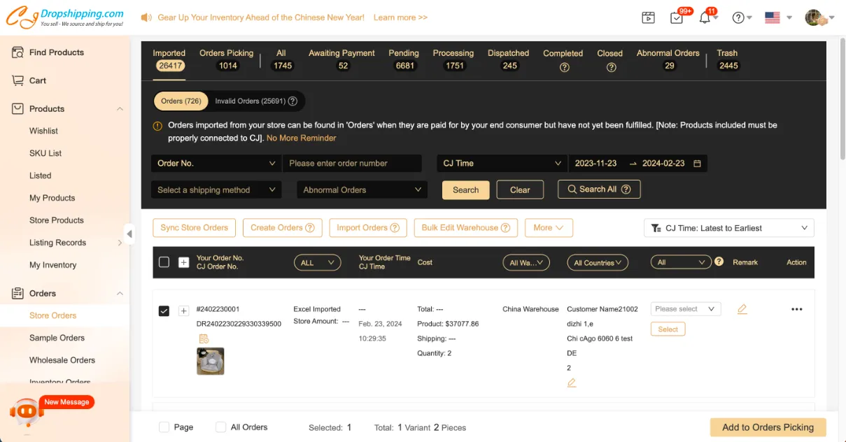 1. Store Orders > Imported > Orders > Choose an order > Add it to Orders Picking;