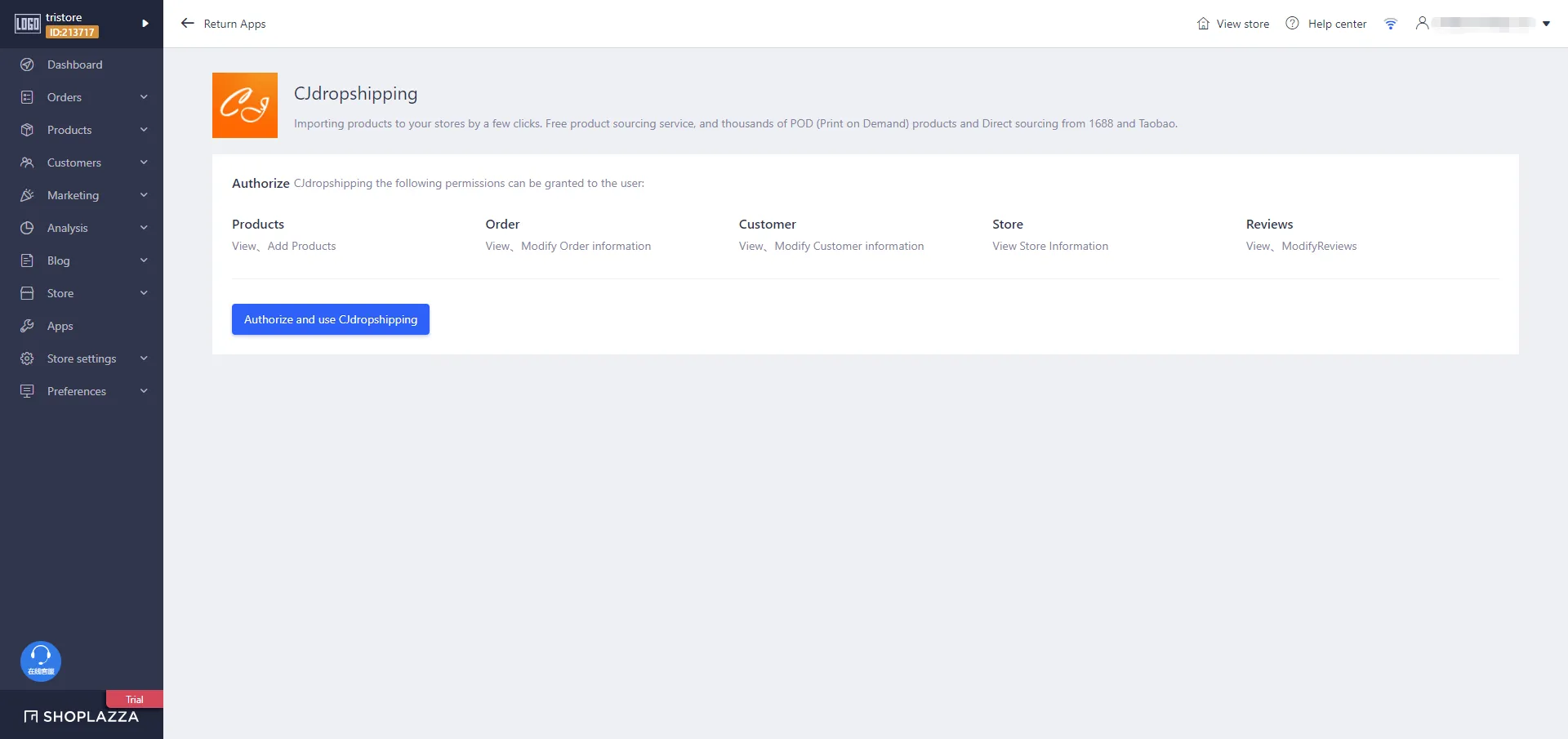 Authorizing your Shoplazza store from the Shoplazza admin is now available. The whole process is very easy and takes less than 2 minutes if you already have a CJ account.