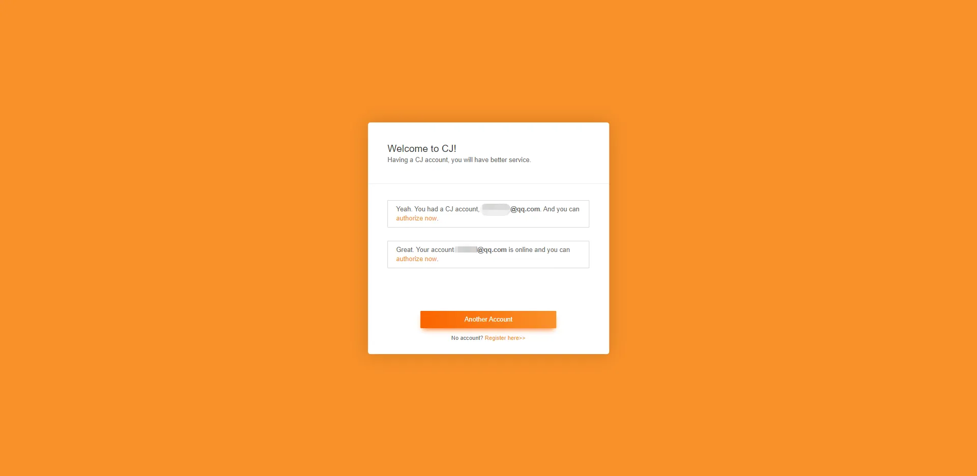 3. And you will be directed to the login page. Choose the acccount you wish to authorize your store to and click 'authorize now' or register a new account by clicking 'Register Here'.