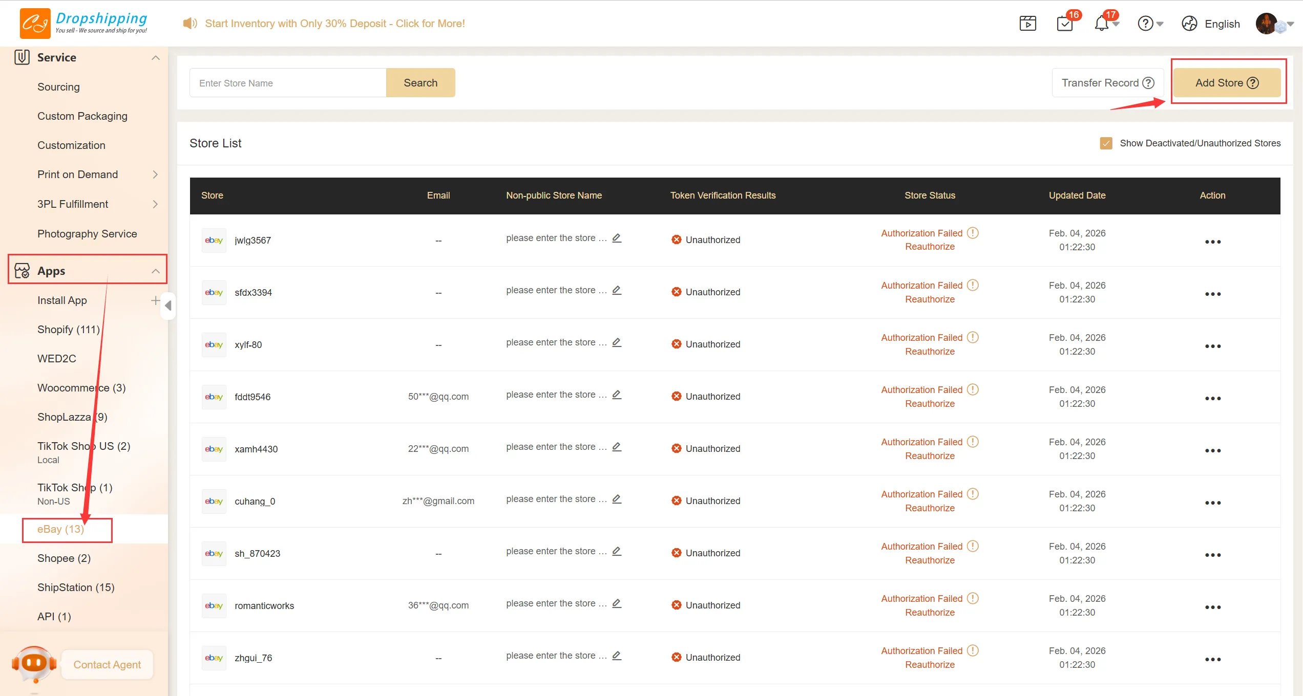 At last, you could go back to the authorization page of eBay stores. You will see the connected store is already on the list.