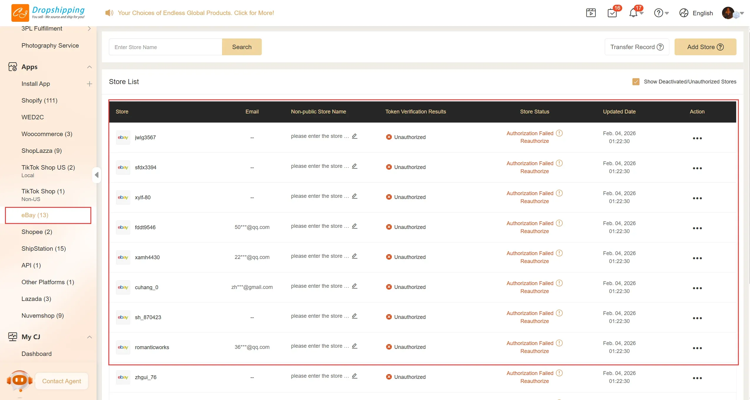 Before connecting your eBay store with CJ, please make sure the store name you enter on the CJ platform is consistent with the user ID of your eBay store. Otherwise, the authorization won't succeed.