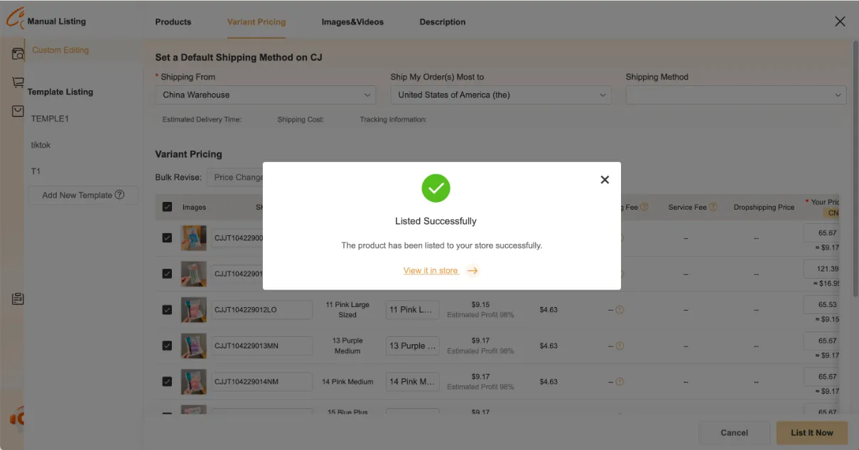 To free things from trouble, a more recommended way is to select CJdropshipping as your product inventory manager on the Shopify management system as it is and will be more stable and assured.