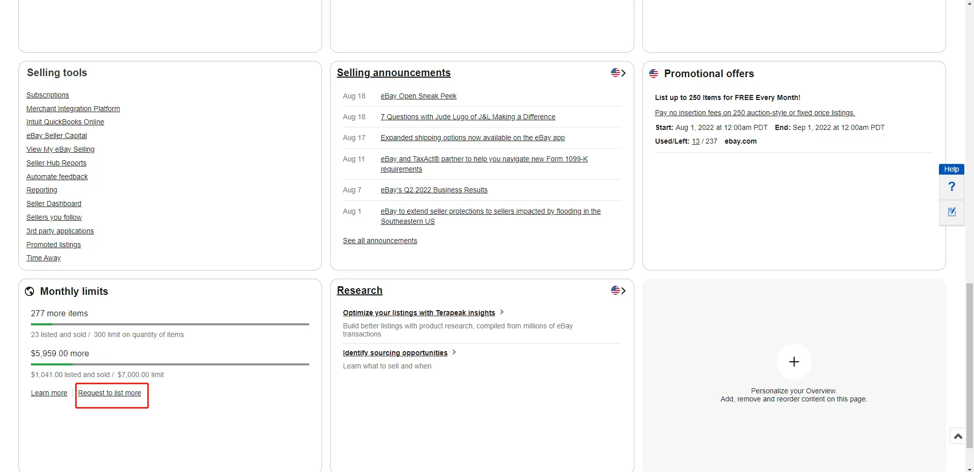 However, if you are not sure about the site, the easiest way is to replace the first slash in the URL suffix of your current eBay page as /sh/ovw. After replacing, you could just click "enter" to check your monthly limits.