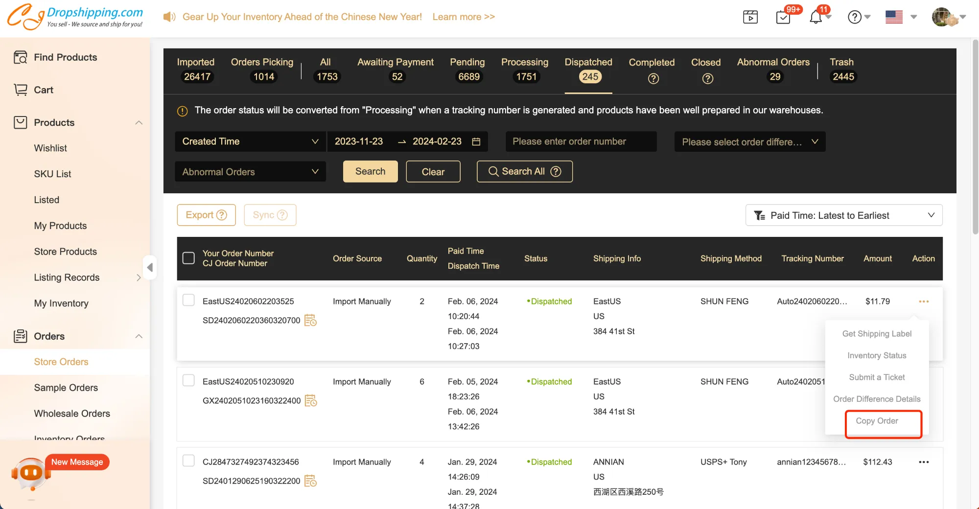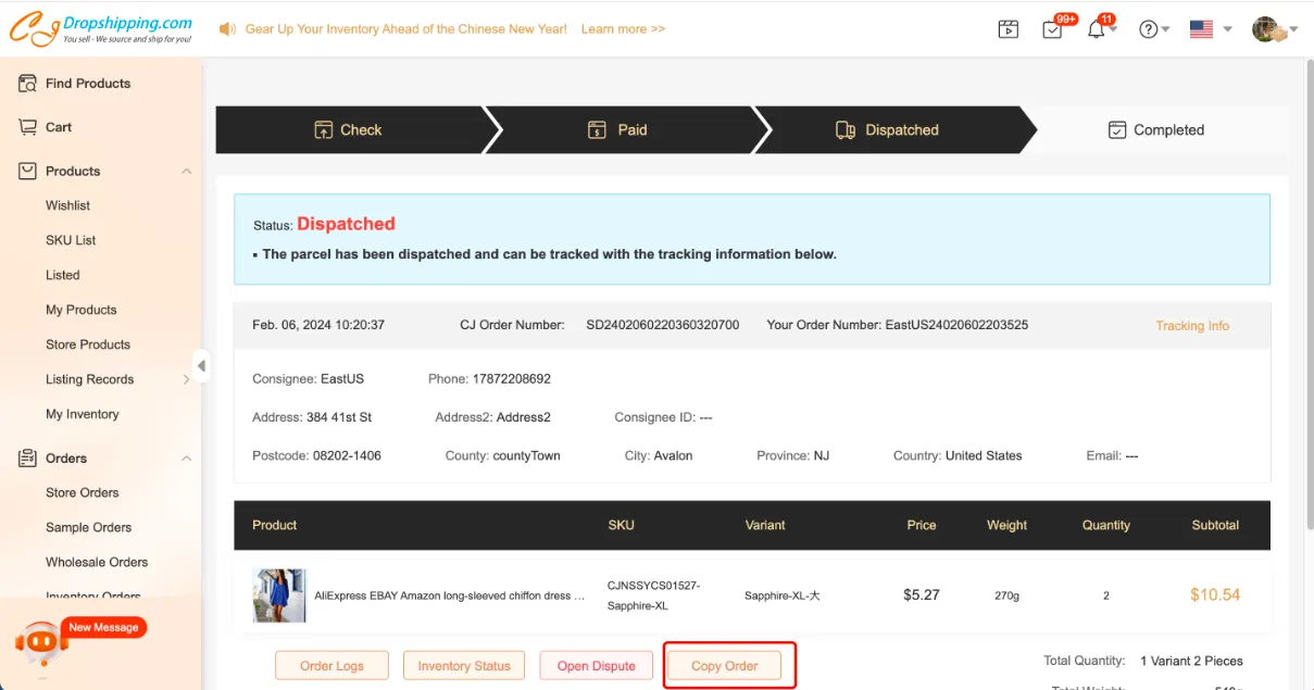 How to Copy Orders on CJdropshipping?