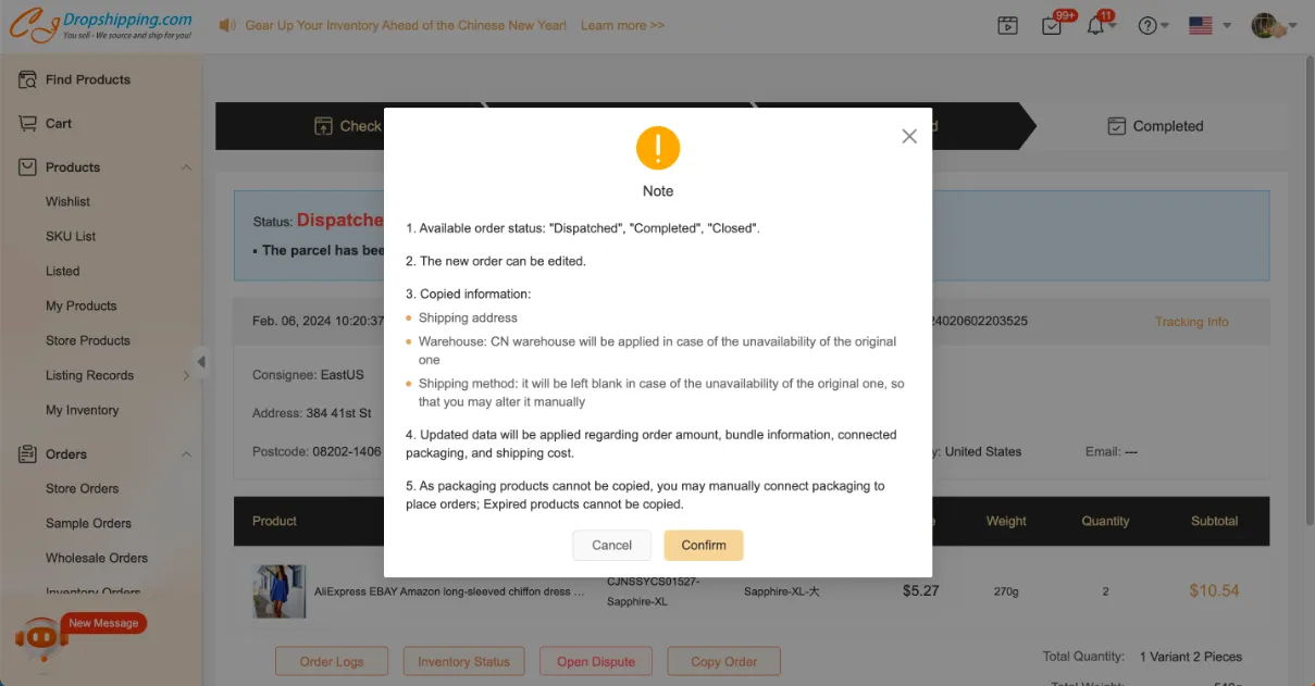 Copy Order is available on CJdropshipping now! This function helps to duplicate dropshipping orders in one second with all the details to save your time from entering the information endlessly by yourself.
