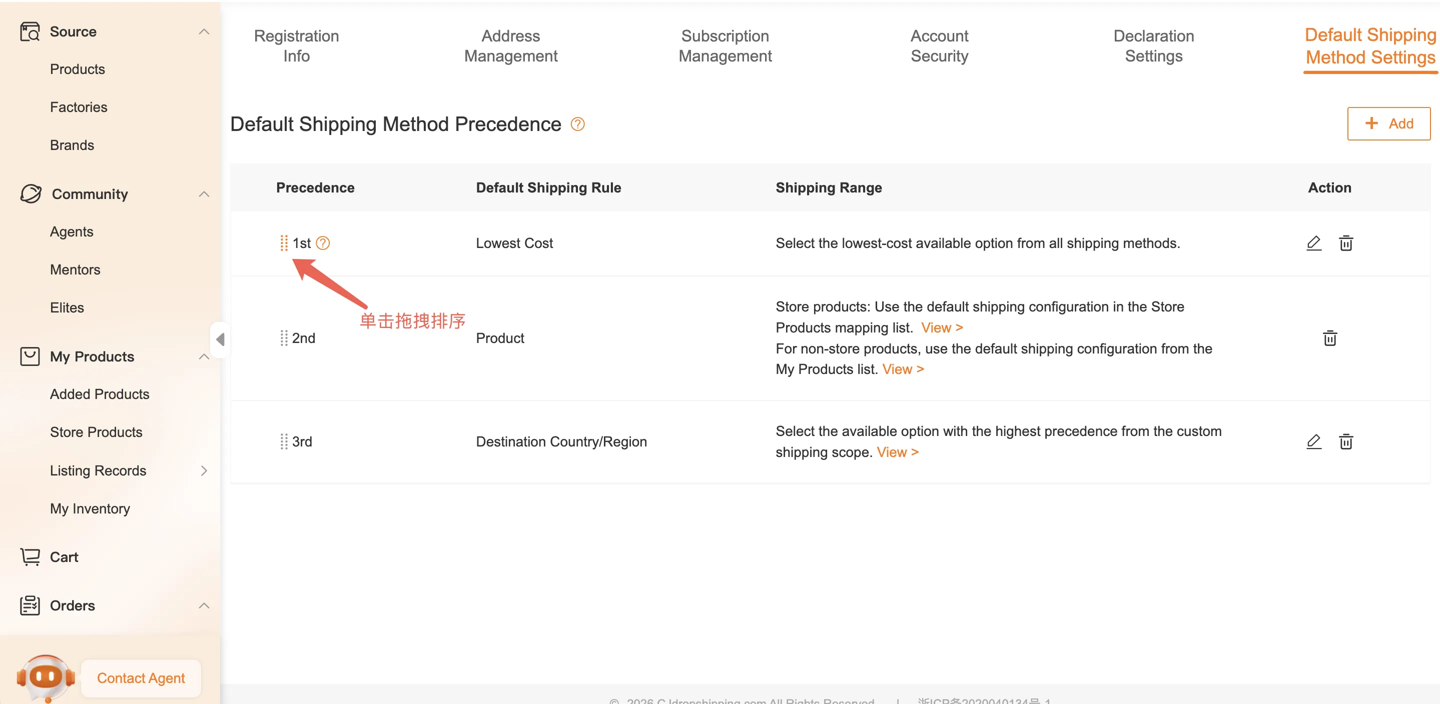 CJ supports six types of default shipping rules, all of which can be prioritized and reordered.