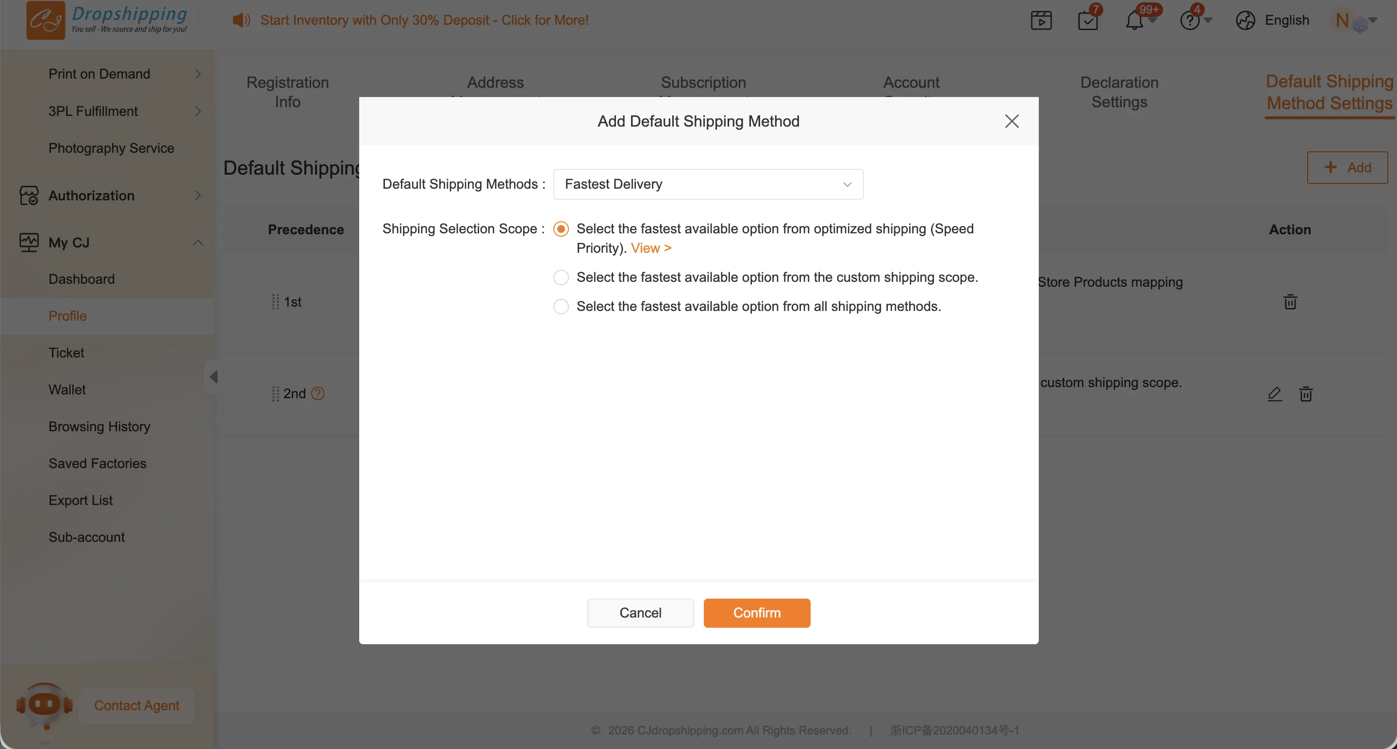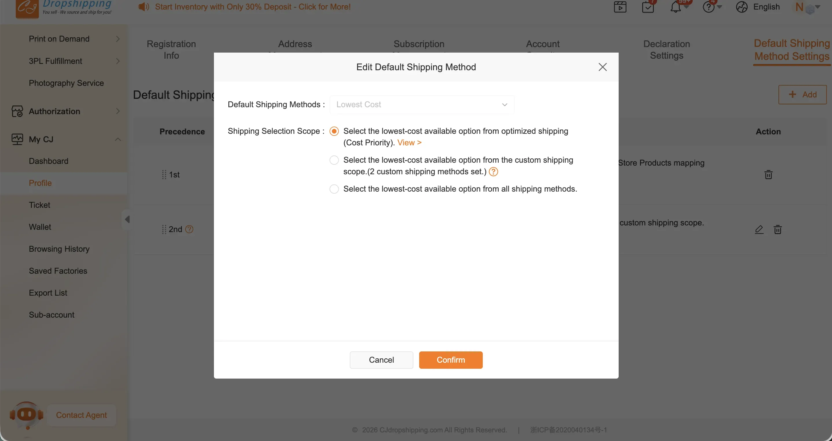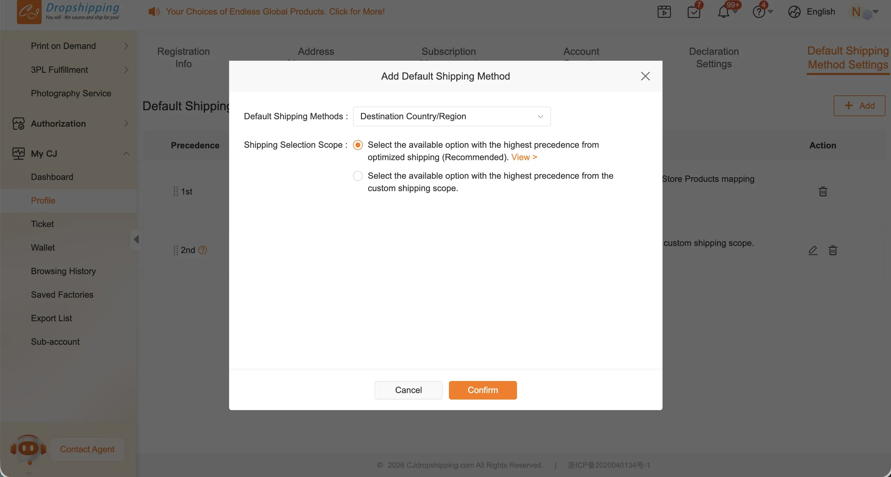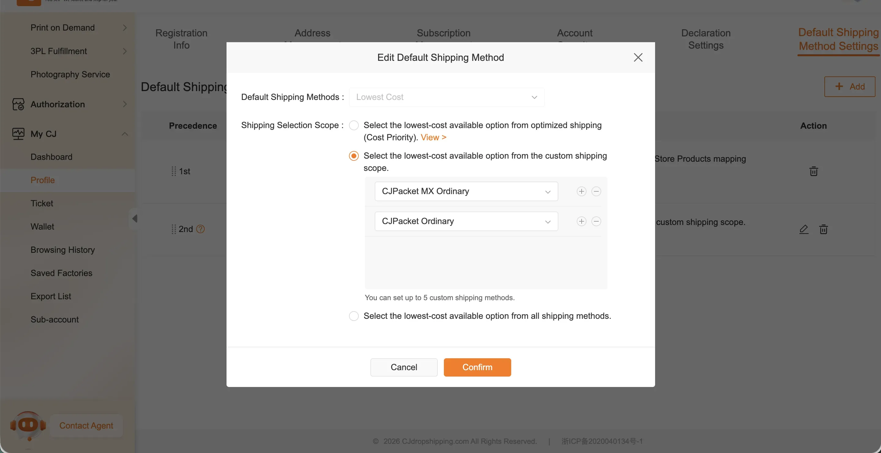 How to Configure Default Shipping Methods & Optimized Shipping on CJ?