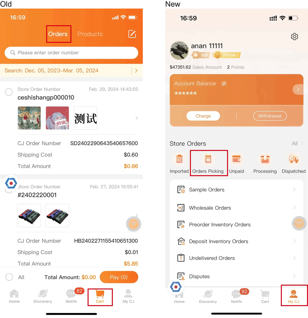 ● The "Cart-Orders" menu has been moved to "Store Orders-Orders Picking".