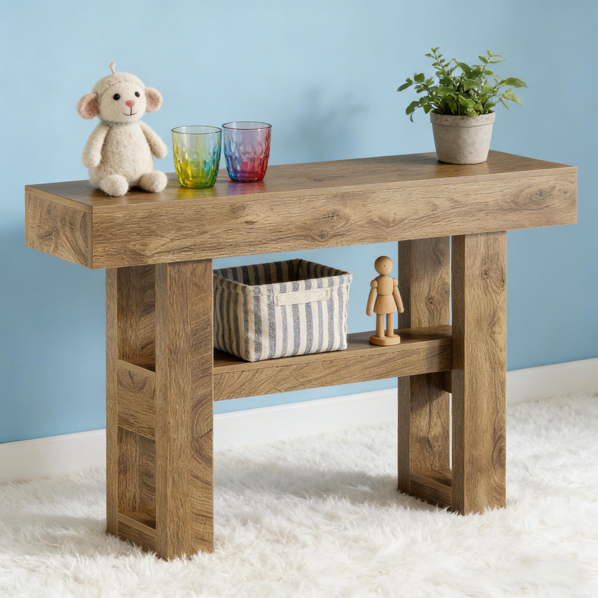 Important Reminder!!! 1) Attention: All products in our store do not support Canada self pickup ordering. Please do not create shipping labels for Canada. Our American products do not support self pickup to Canada 2)We do not ship to Alaska, Hawaii, US protectorates (e.g., Puerto Rico), P.O. boxes, or APO/FPO addresse 3)We don’t accept non-defective remorse returns Generous Storage Capacity - This rustic entryway table offers two spacious tiers, providing ample room to display decor, organize essentials, or keep your hallway tidy. Perfect for holding keys, mail, or adding a warm lamp to brighten your foyer. Multi-Purpose Design - Functioning as a sofa table, console table, or entryway piece, this versatile table adapts to any space. Place it in hallways, behind couches, or wherever you need stylish storage—ideal for small homes and apartments. Classic Farmhouse Style - The vintage brown wood grain finish brings cozy, rustic charm to your home. Whether in your entryway or living room, this table adds timeless elegance with its warm farmhouse aesthetic. Durable Construction - Made from high-quality thickened MDF, this hallway table features a sturdy, reliable build. Adjustable foot pads provide stability on uneven floors, ensuring long-lasting use in any home. Simple Setup & Support - Assembly is quick and easy with included instructions and tools. Plus, our dedicated customer service team is available to help if you need assistance.
