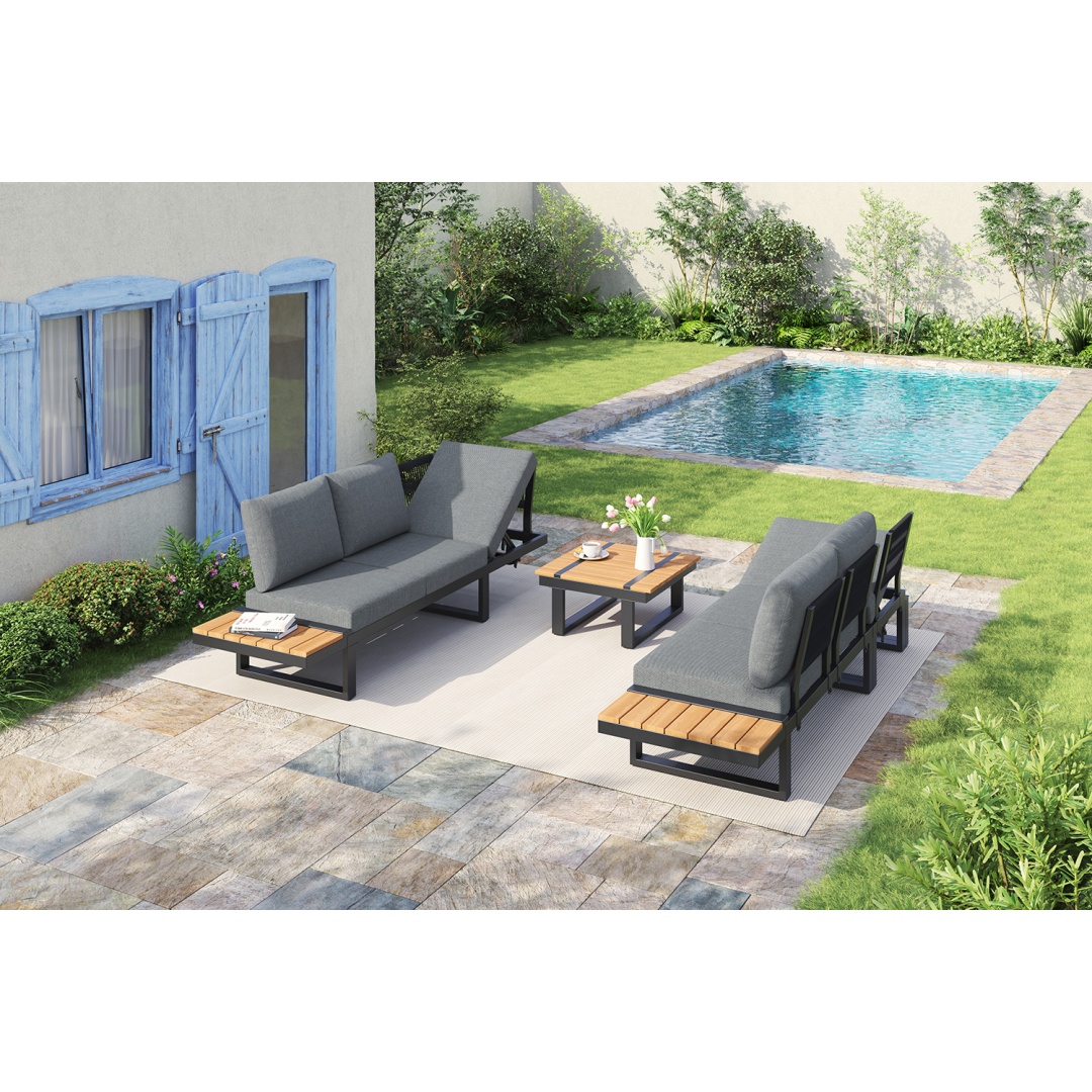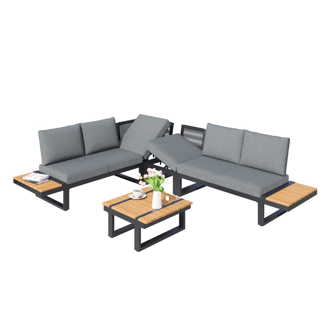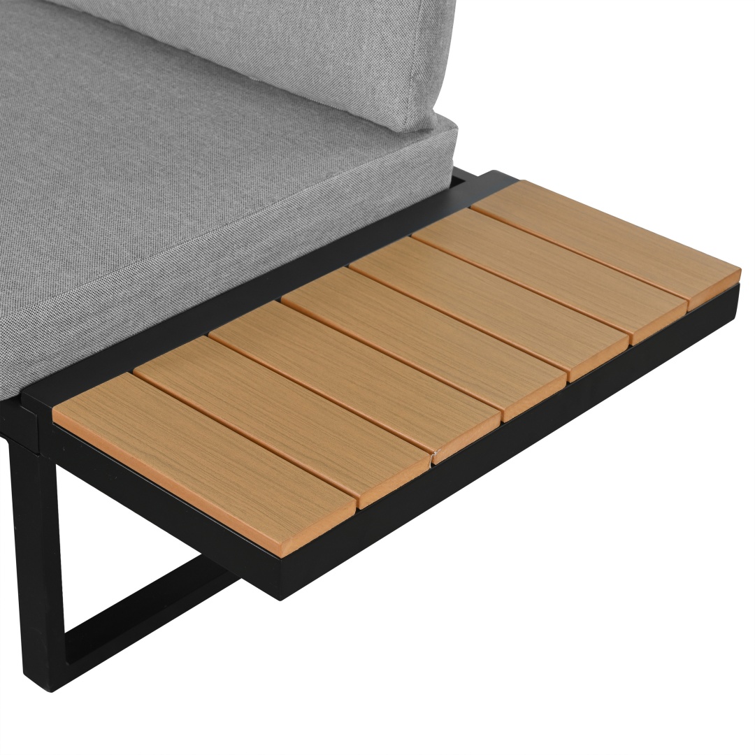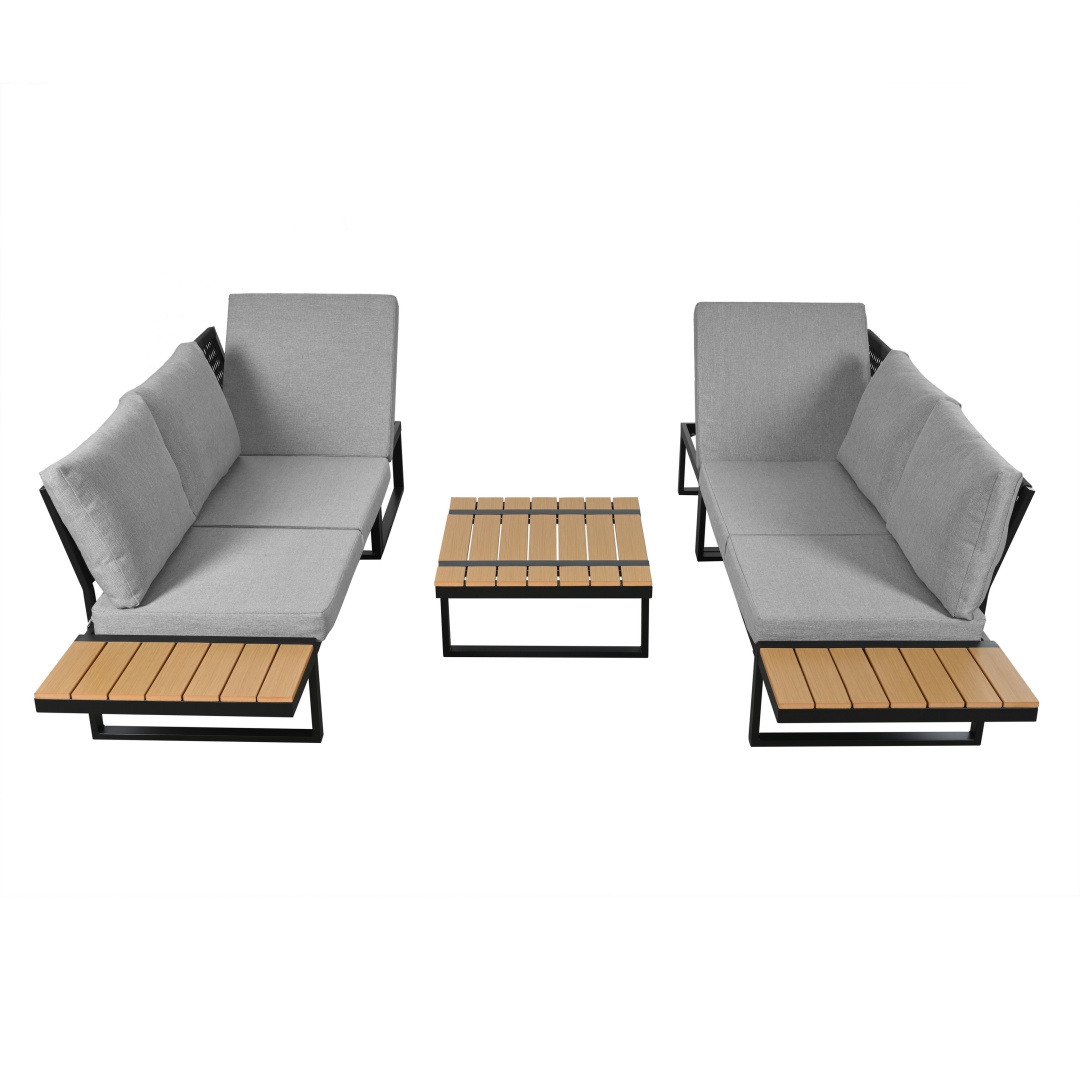 Product Name:5-6 Seater Garden Lounge Set, Galvanized Iron Frame Outdoor Patio Furniture, 5-Piece Set, Reclining & Adjustable Seating, WPC Tabletop Table Included, Grey fabric + gray frame