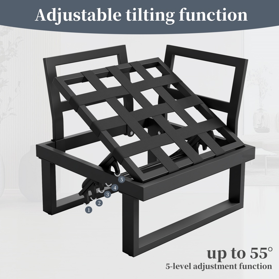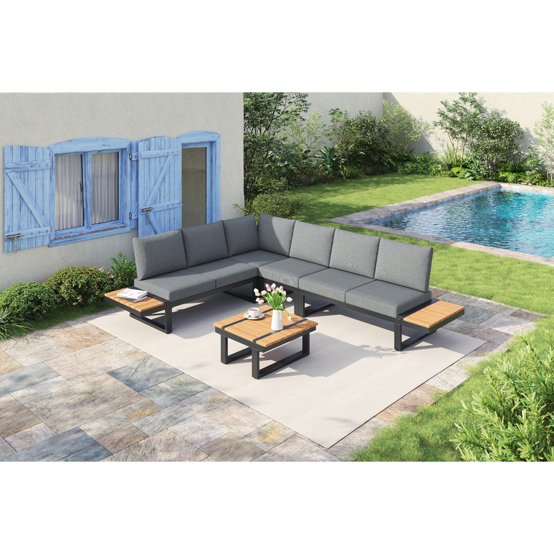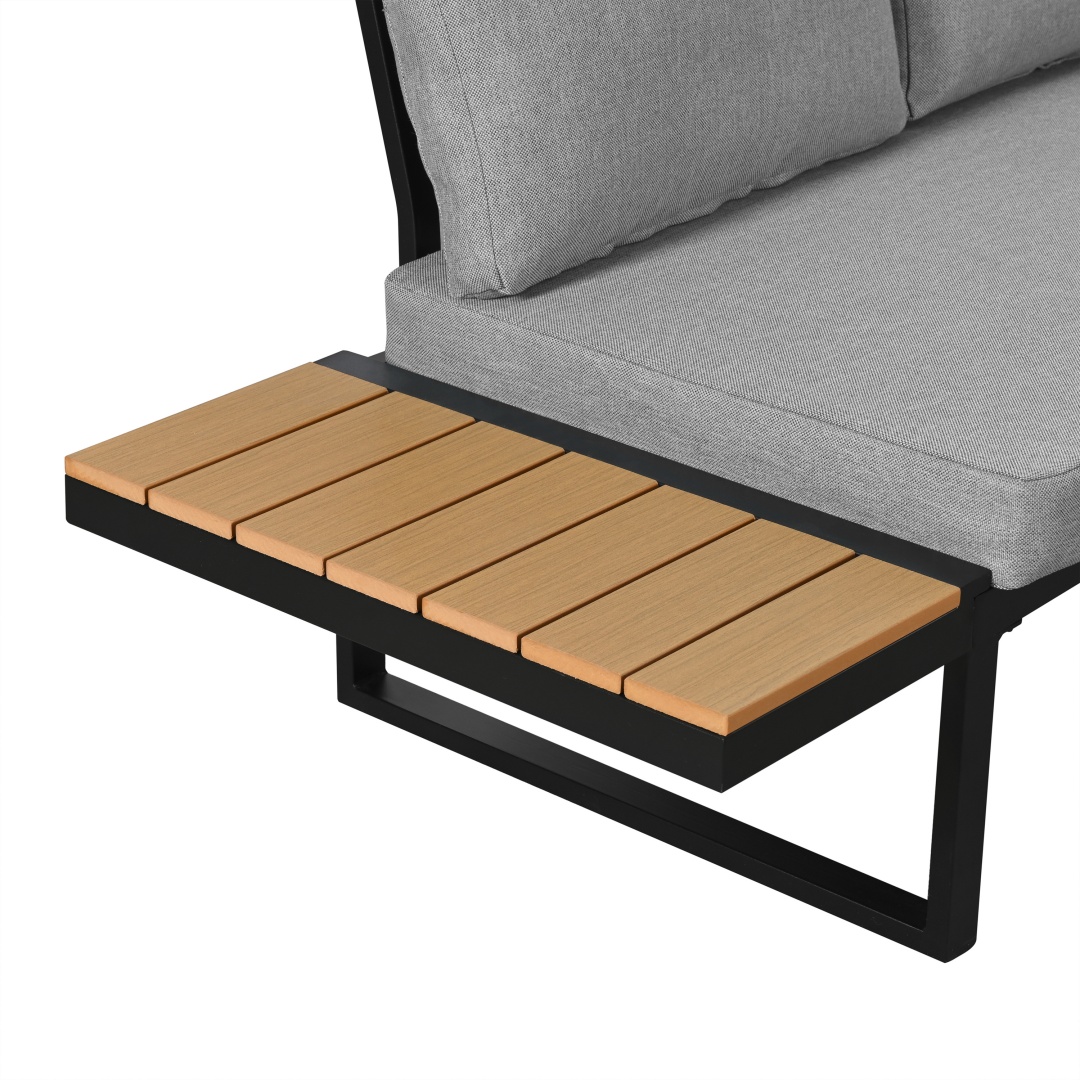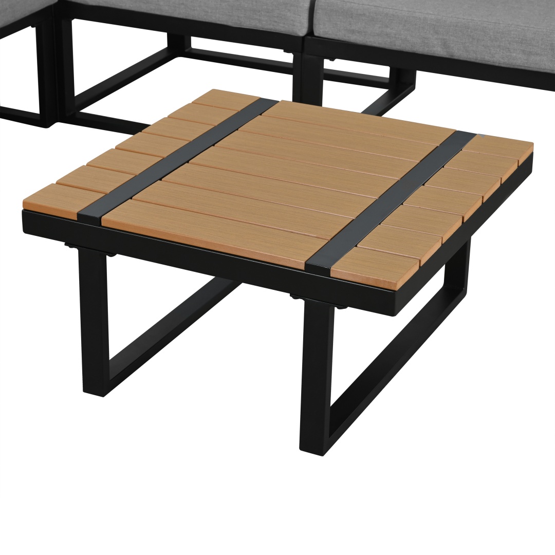 Product Name:5-6 Seater Garden Lounge Set, Galvanized Iron Frame Outdoor Patio Furniture, 5-Piece Set, Reclining & Adjustable Seating, WPC Tabletop Table Included, Grey fabric + gray frame