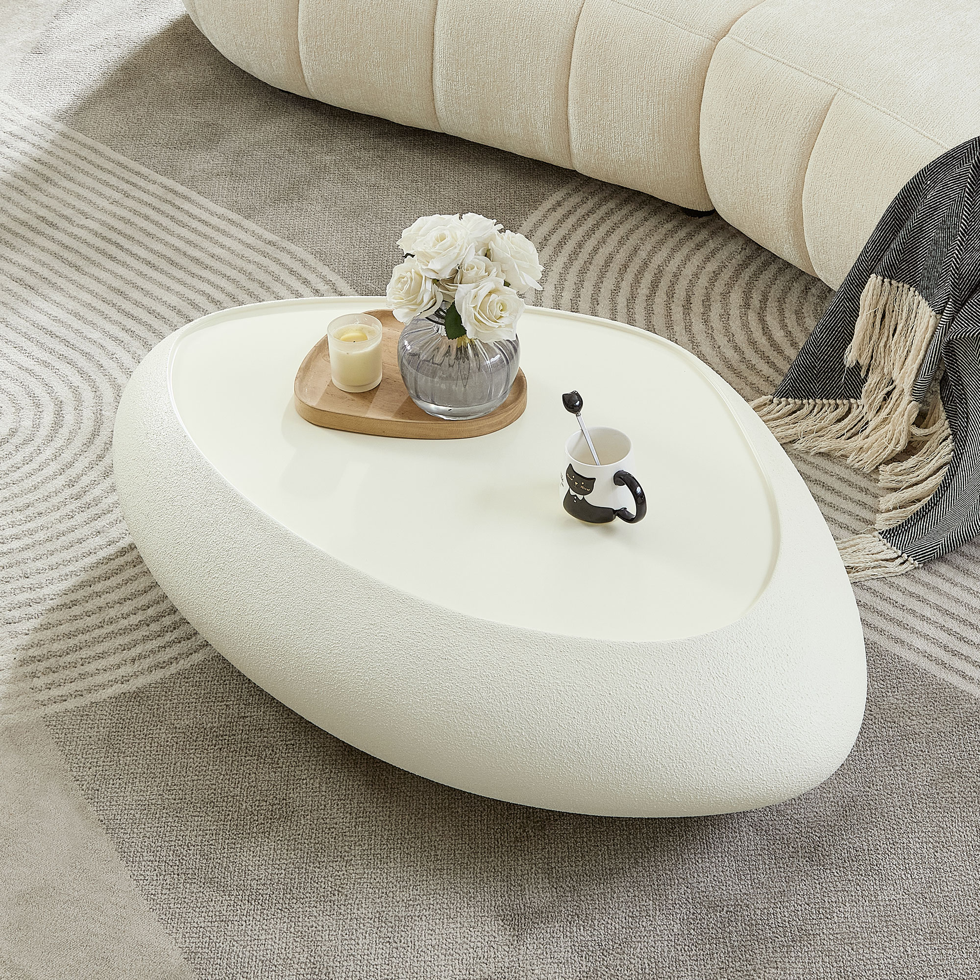 Product Name:47.24''Fiberglass Oval Coffee Table for Living Room Elliptical Table,Faux Matte Rocks Table front of the Sofa, Irregular Center Table,No Need Assembly,White