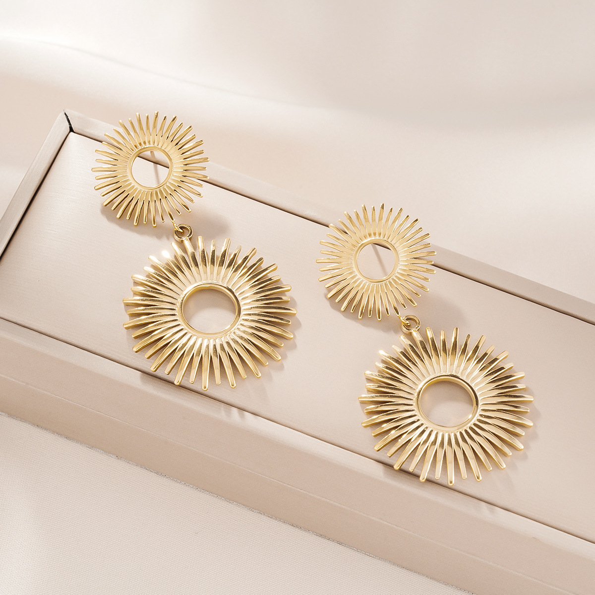 1 Pair 18K Gold Plated Hollow Flower Earrings For Women, European & American Style, Geometric Hollow Design, All-Match Temperament Jewelry