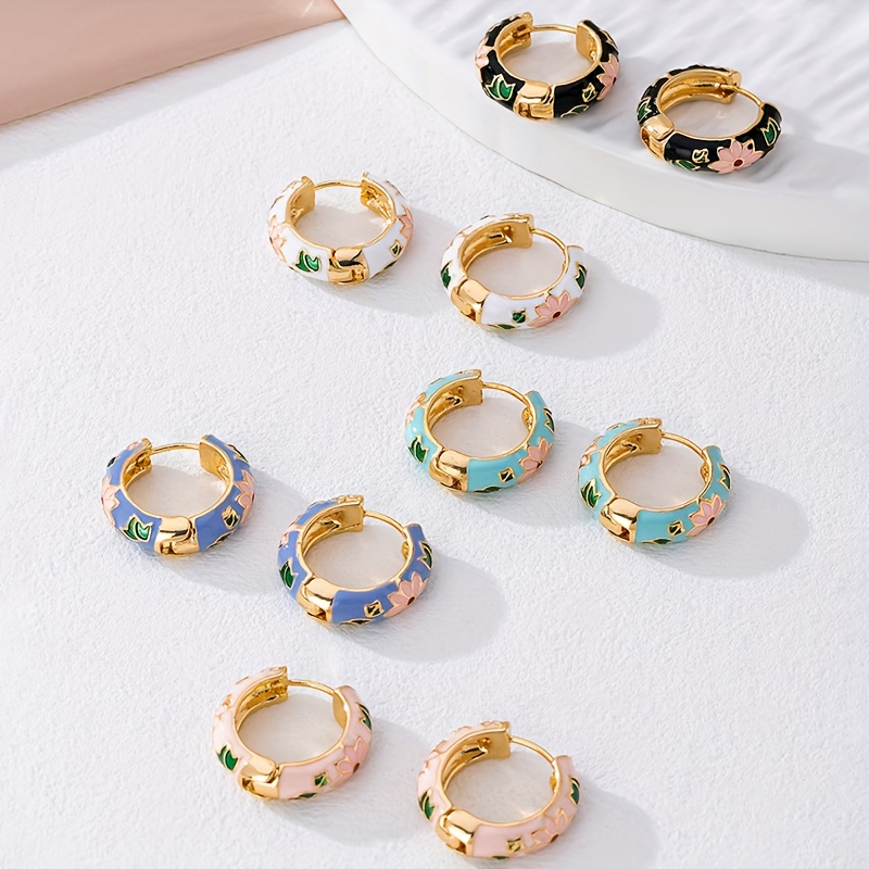 1 Pair Fashion Exquisite Enamel Round Earrings For Women, Daily Commute Wear