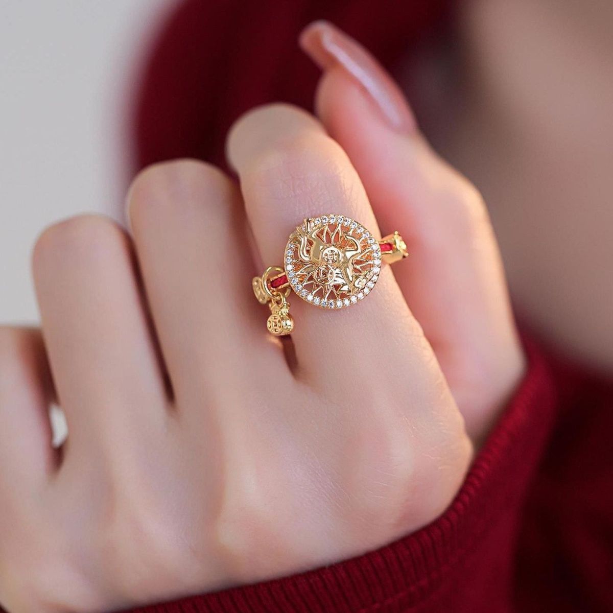 2026 New Year Light Luxury Zodiac Horse Ring, Rotatable Adjustable Band