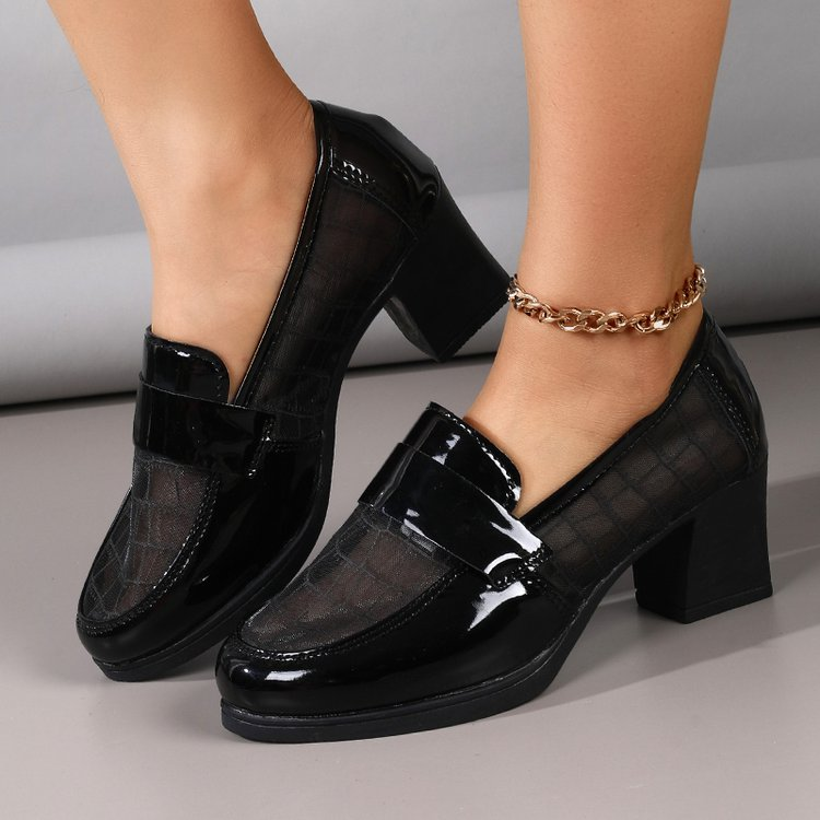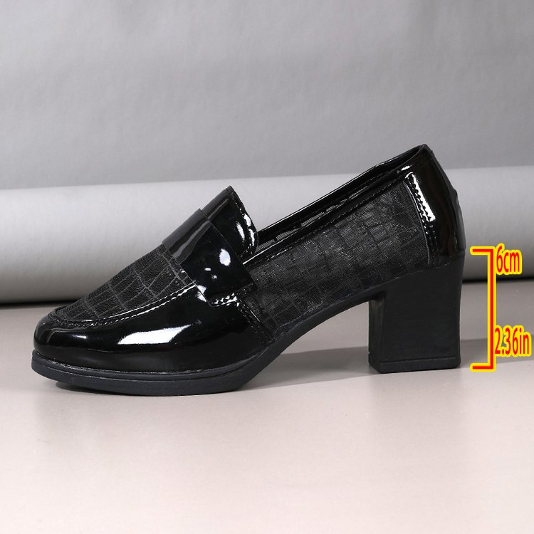 Elevate your professional summer look with these breathable mesh high heels. Designed with a hollow mesh upper, soft leather accents, and a stable chunky mid-heel, these office pumps offer all-day comfort and a polished silhouette. Perfect for long workdays, commutes, or casual business occasions, they blend lightweight breathability with timeless professional style.
