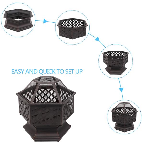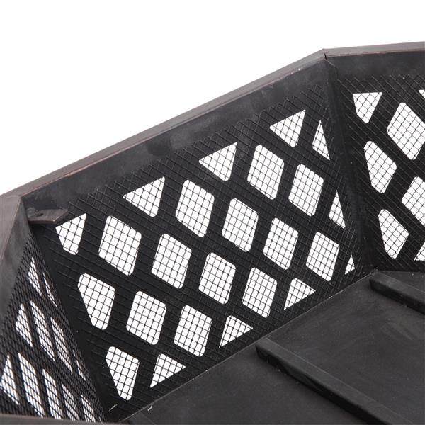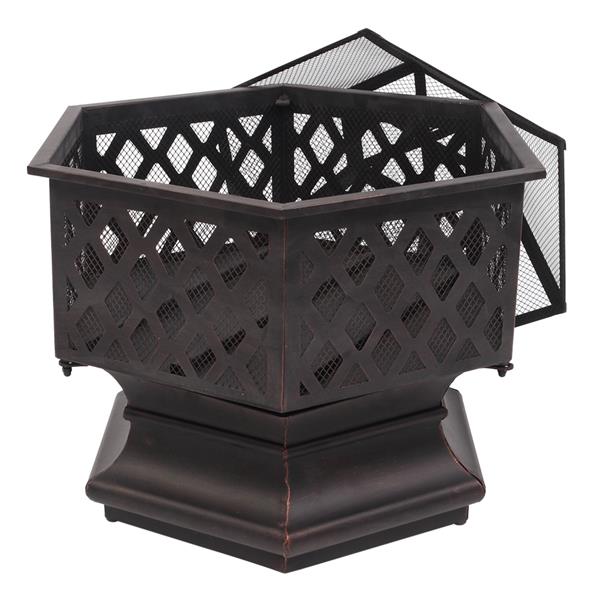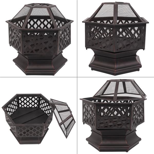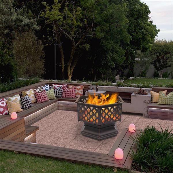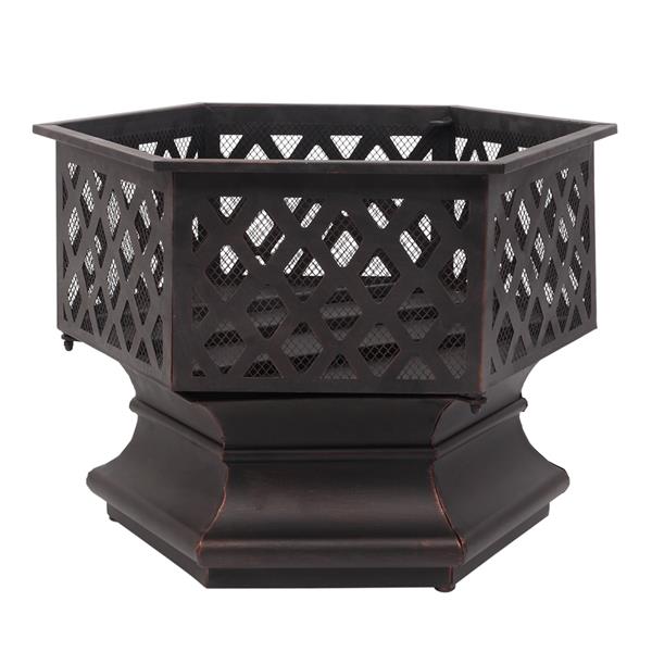 This 22" hexagonal shaped iron brazier is a best choice for you. Its distressed bronze shape, lattice detailing is a perfect decoration to decorate your yard. You can put it by the poolside or backyard. Its deep and wide pit can provide plenty of space for a raging fire, which gives you comfortable and warm space all night. Its lightweight and durable material made the pit more utility. You will like it so what are you waiting for?