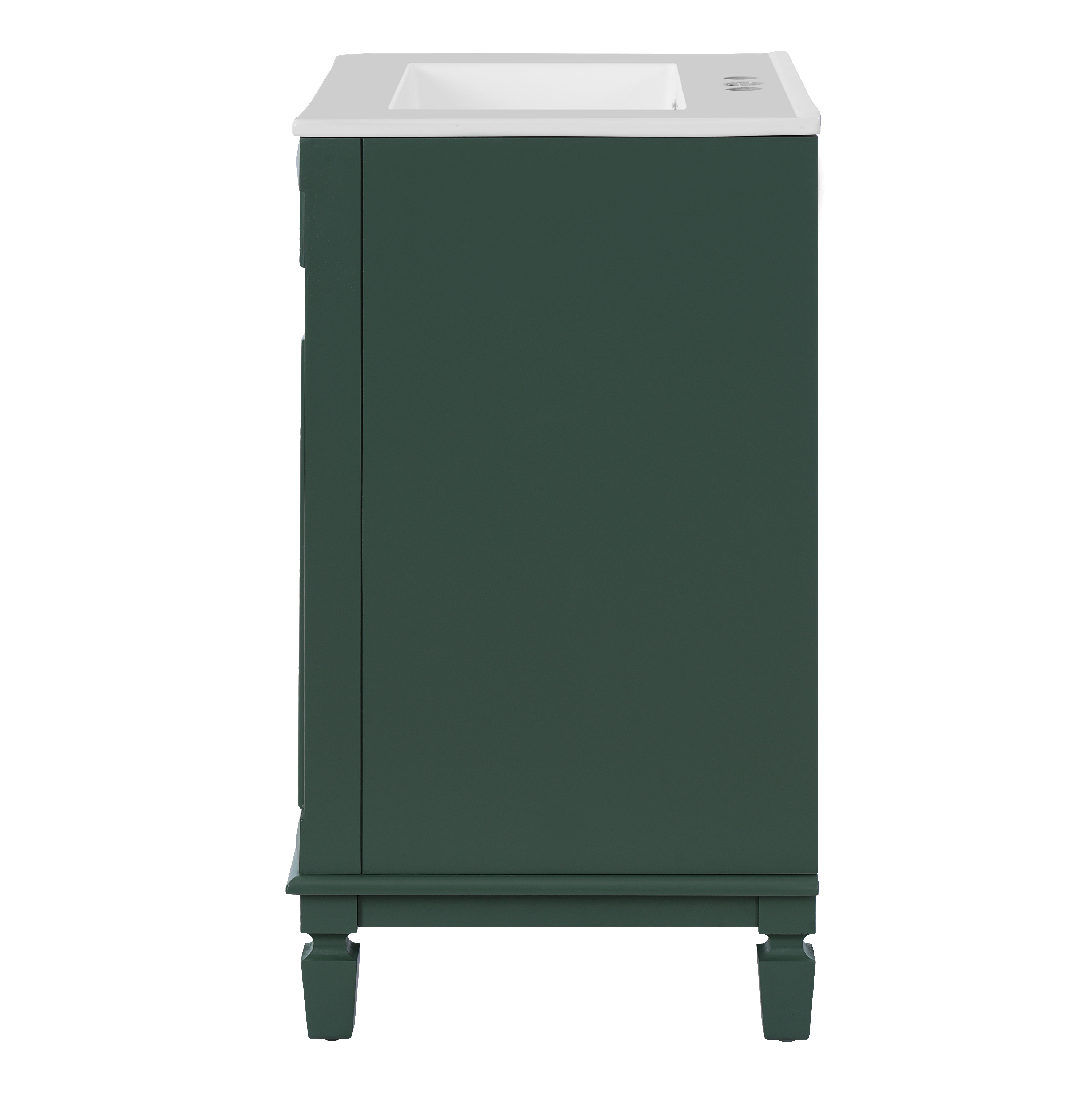 This 24-inch ceramic basin bathroom vanity is a perfect blend of modern simplicity and practicality. Made of high-quality MDF and solid wood frame, it is durable and elegant. The smooth surface of the ceramic basin is not only easy to clean, but also adds a sense of fashion to the bathroom. The cabinet is compact and equipped with two exquisite cabinet doors, providing ample storage space to help you organize bathroom supplies and keep the space neat and tidy. Whether it is a modern or minimalist style bathroom, this bathroom cabinet can become a highlight in your home, enhancing the overall quality and comfort.