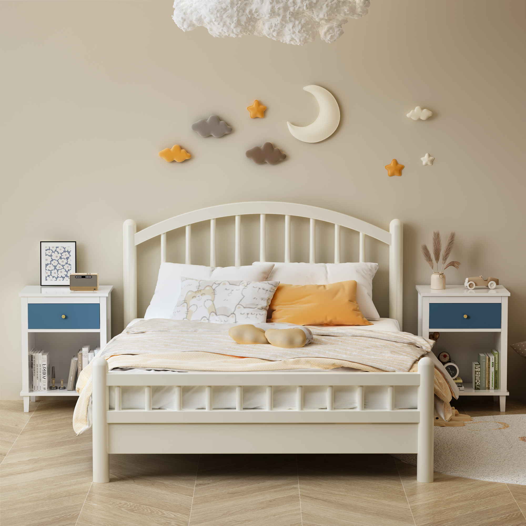 Product Name:26.77''H Wooden Nightstand with One Drawer One Shelf for Kids, Adults, Navy+Golden handle
