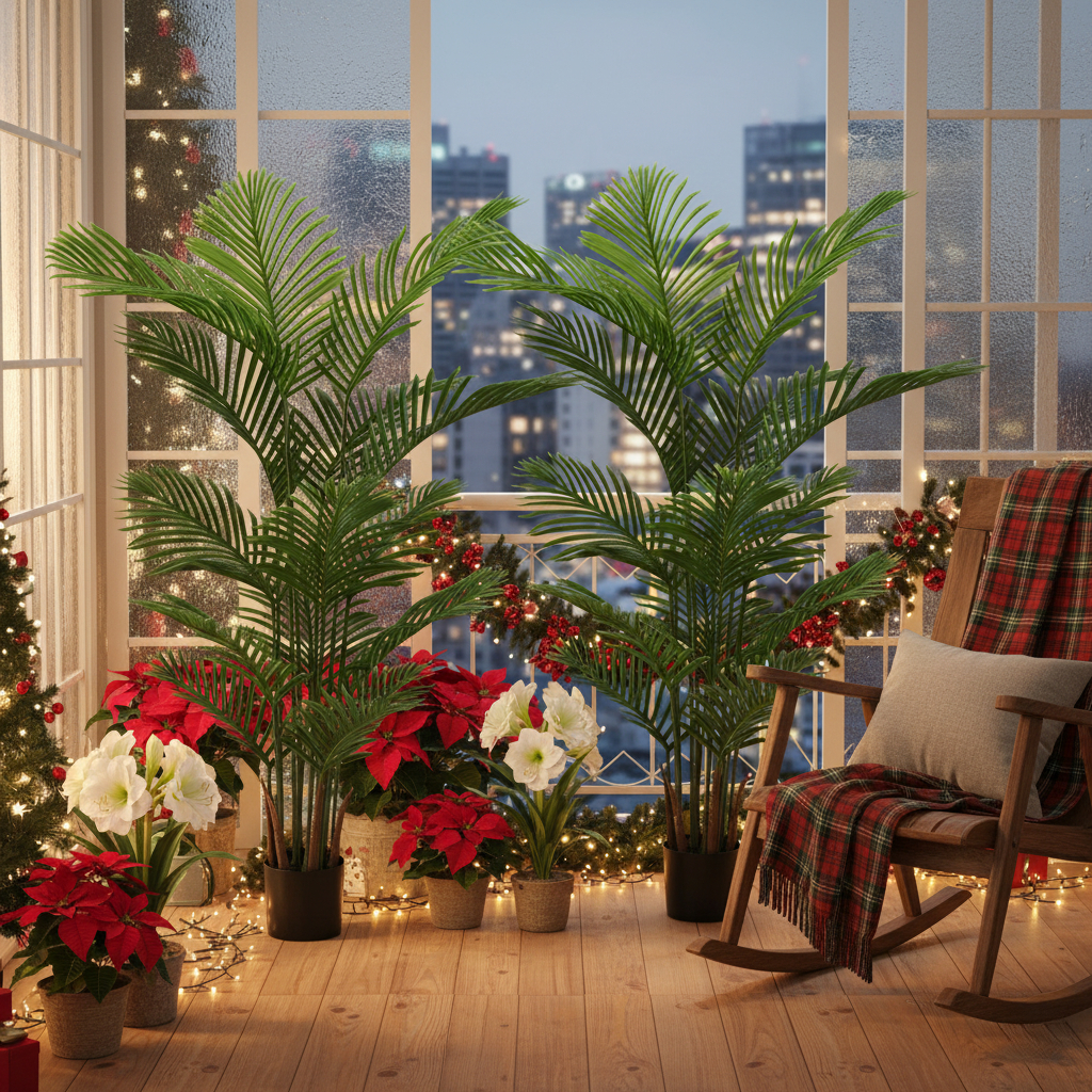 Natural Tropical Charm: Showcases 15 lush, arching fronds imitating natural palms. Brings natural warmth and festive ambiance to any space.