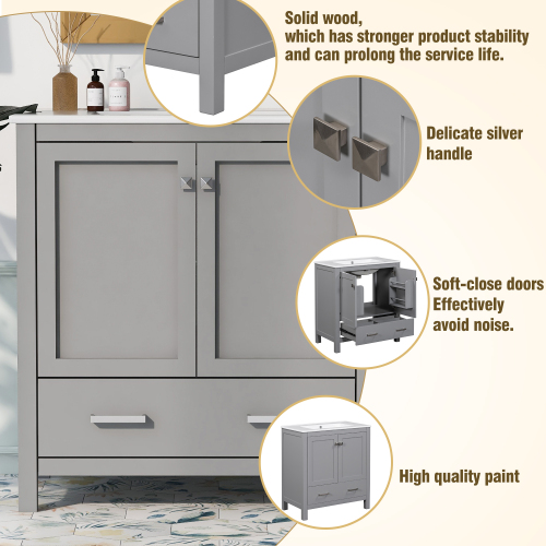 Product Name:30" Gray Bathroom Vanity with Single Sink, Combo Cabinet Undermount Sink, Bathroom Storage Cabinet with 2 Doors and a Drawer, Soft Closing, Multifunctional Storage, Solid Wood Frame