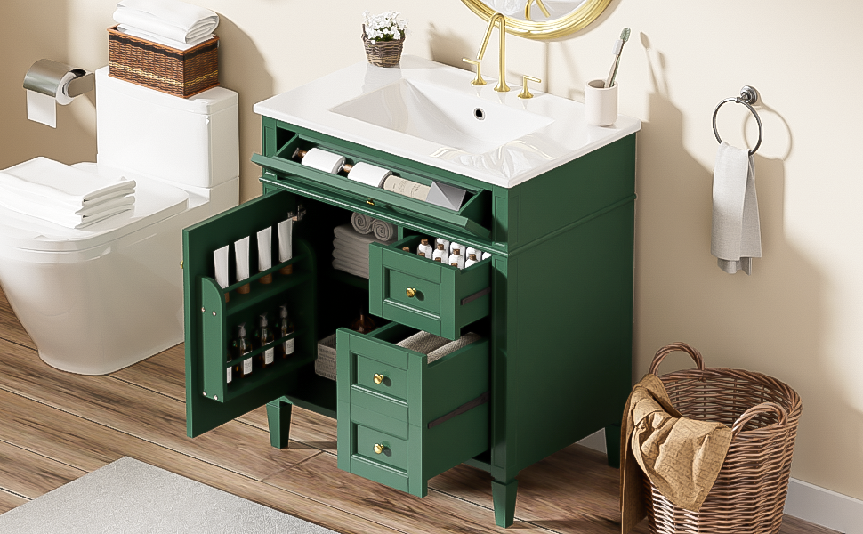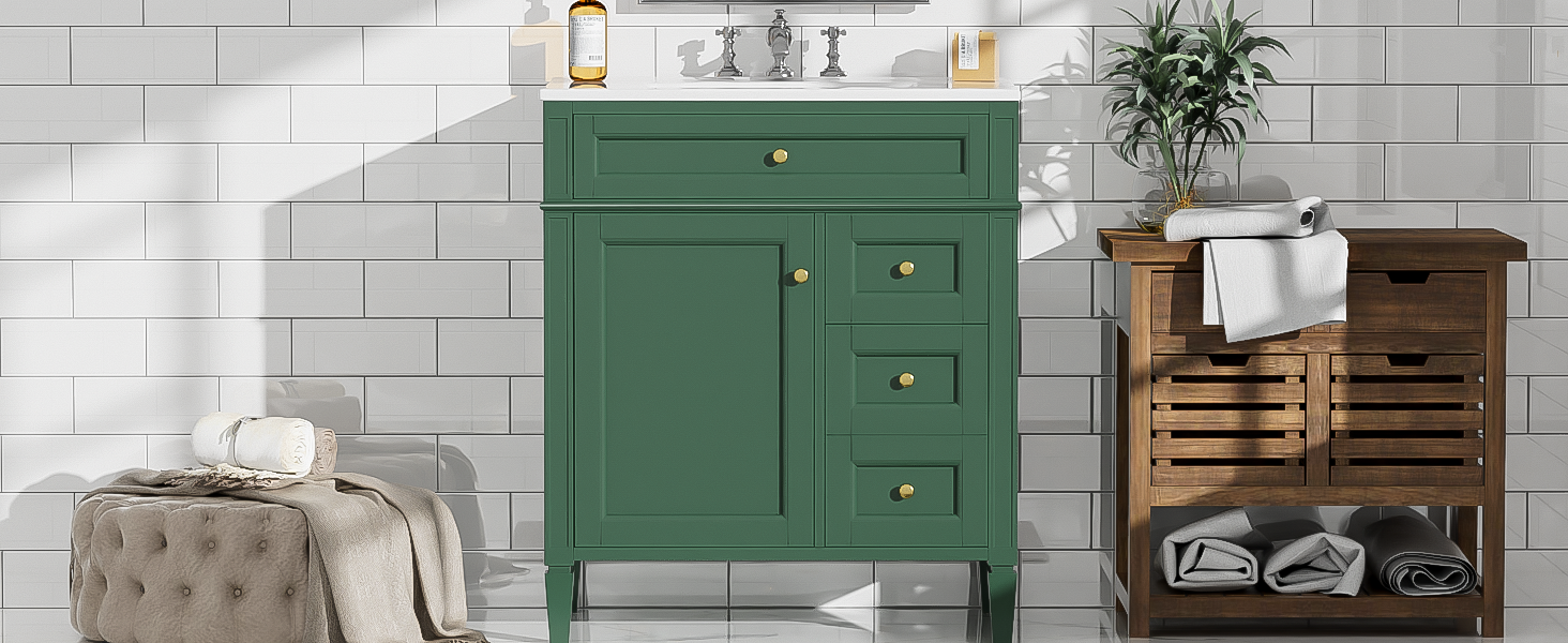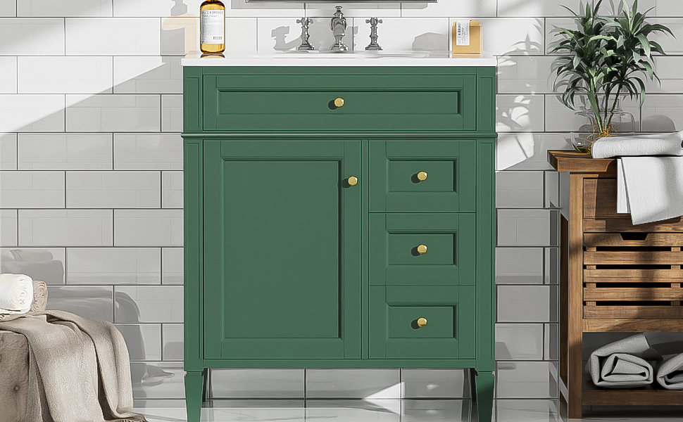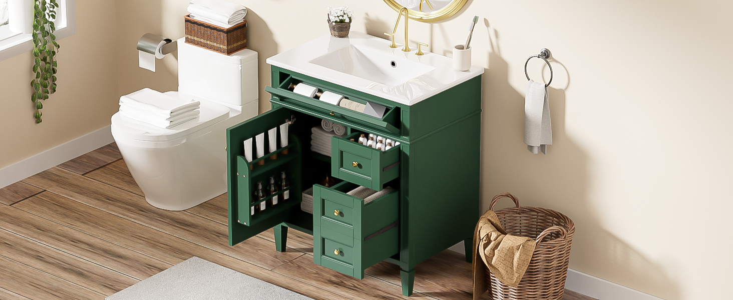 Product Name:30'' Bathroom Vanity with Top Sink, Modern Bathroom Storage Cabinet with 2 Drawers and a Tip-out Drawer, Single Sink Bathroom Vanity