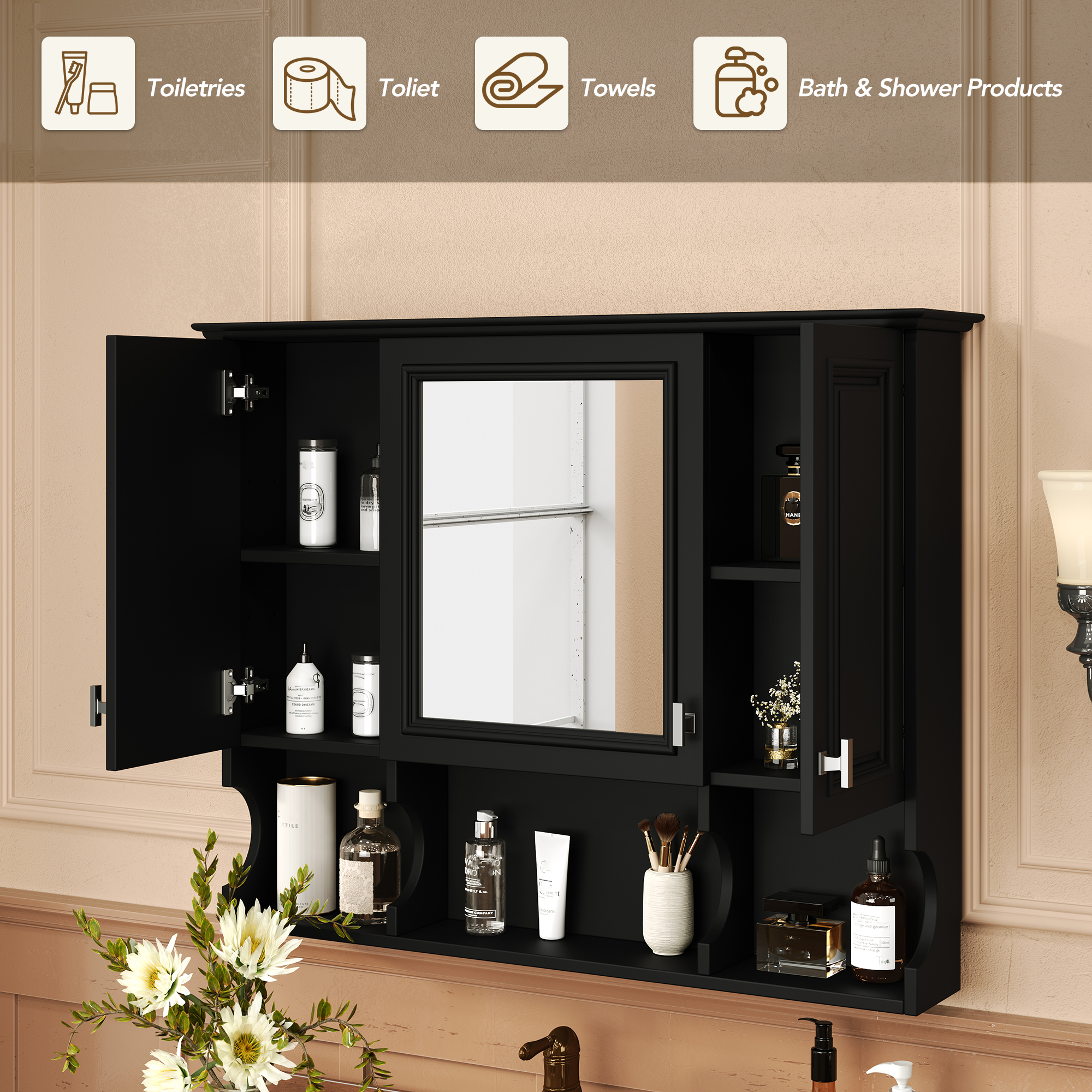 Product Name:35'' x 28'' Wall Mounted Bathroom Medicine Cabinet, Modern Bathroom Wall Cabinet with Mirror, Mirror Cabinet with Open Shelves