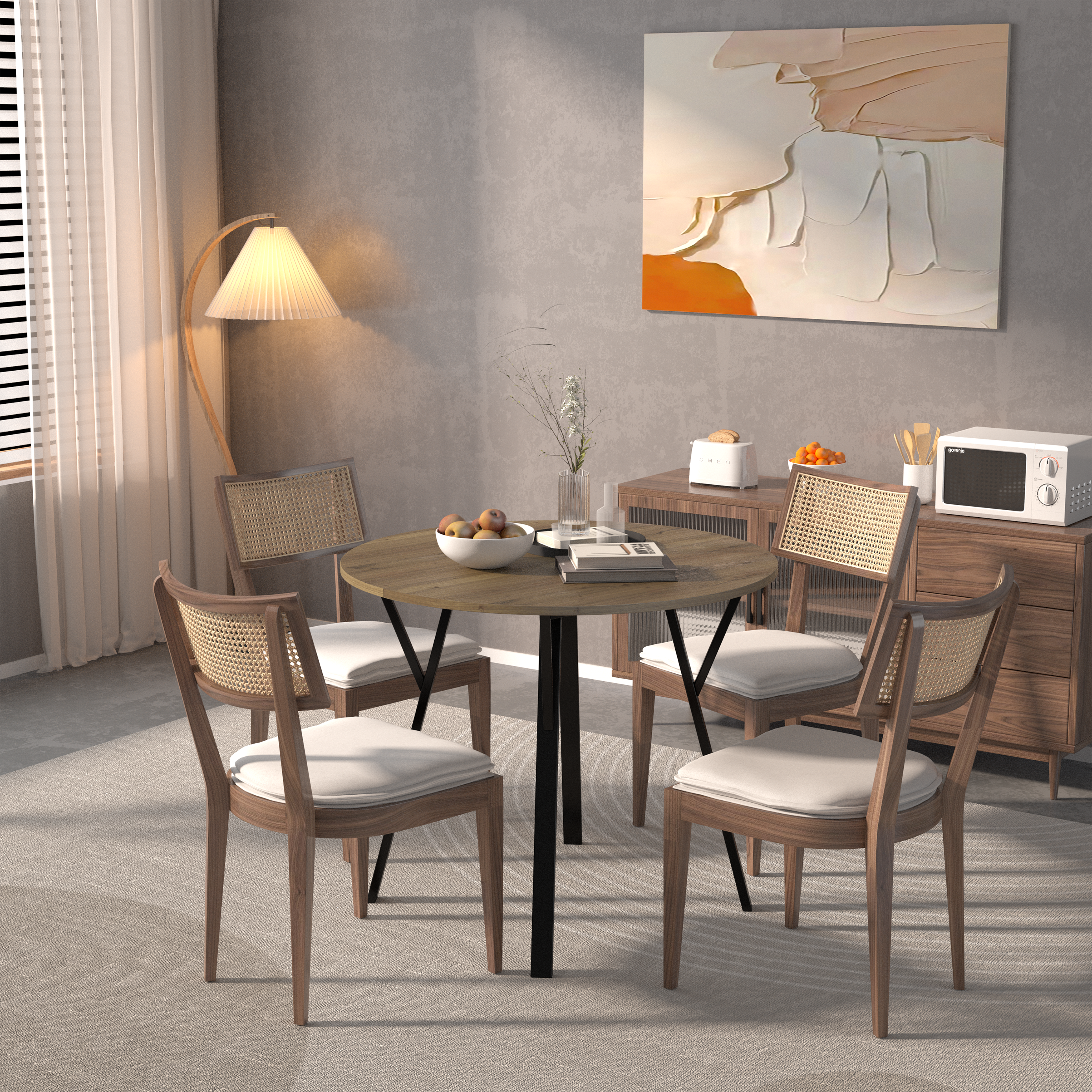 Product Name:35.43 Inch Round Dining Table, Small Circle Kitchen Table with Metal Black Legs for 2-4 people,Modern Dining Room Table, Brown (only table)