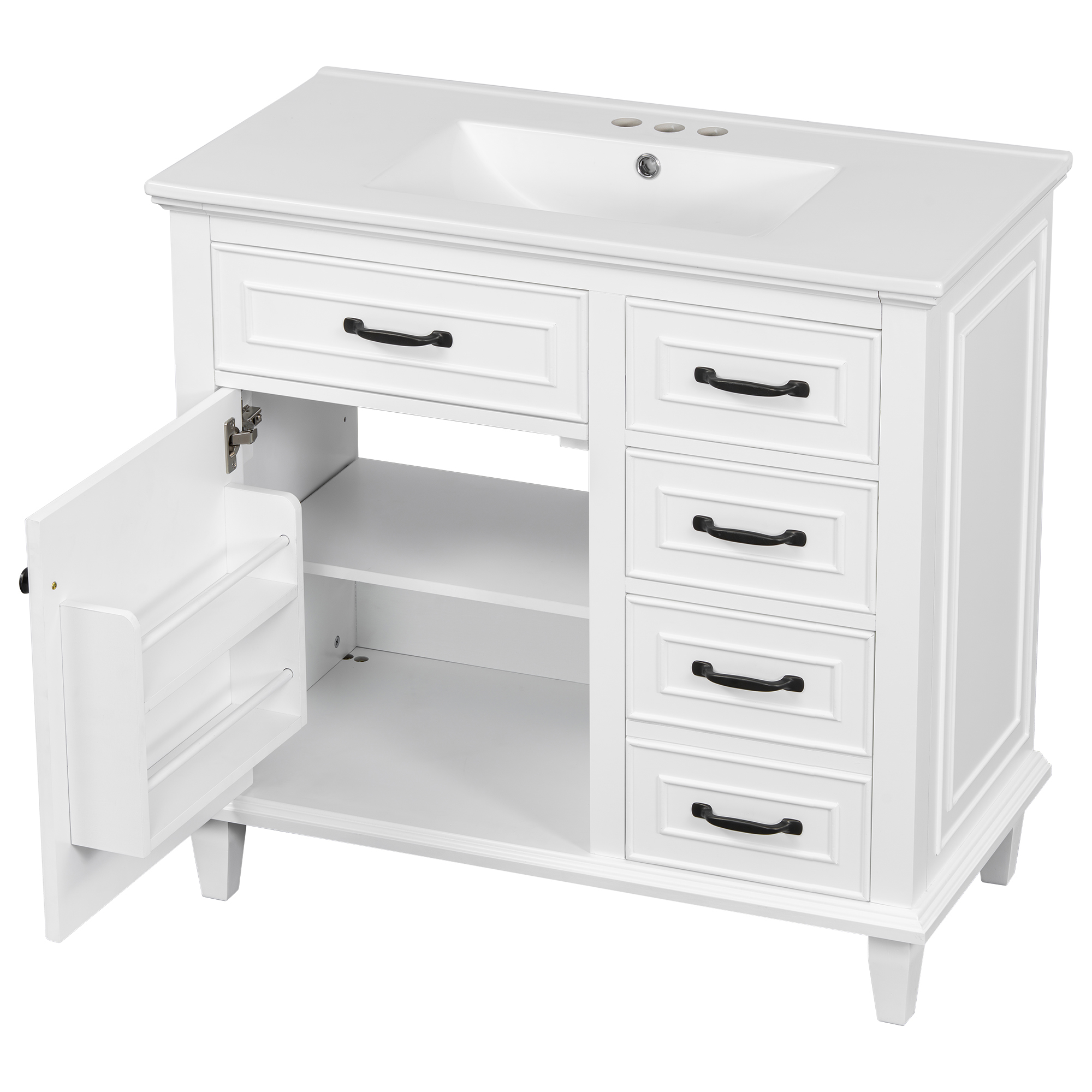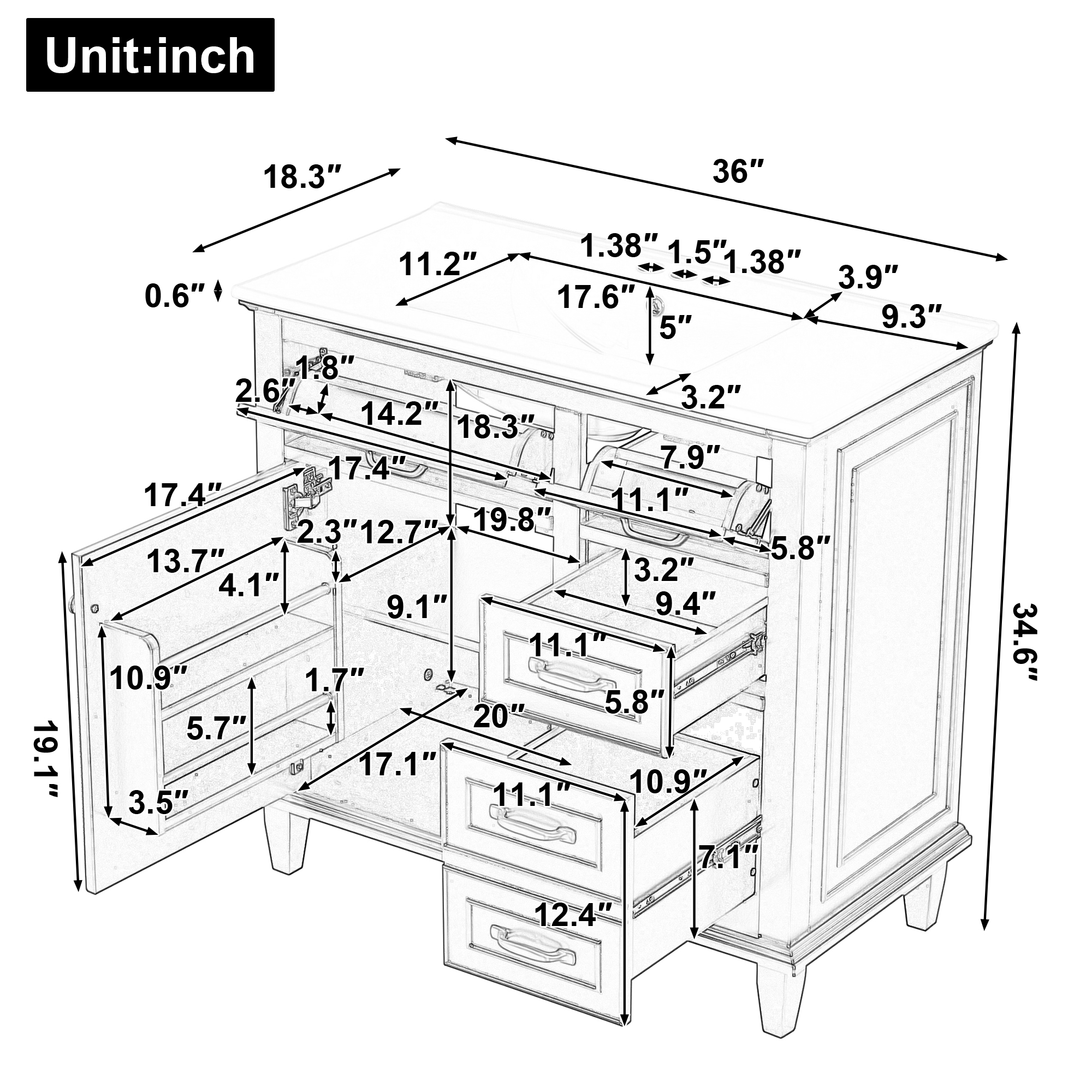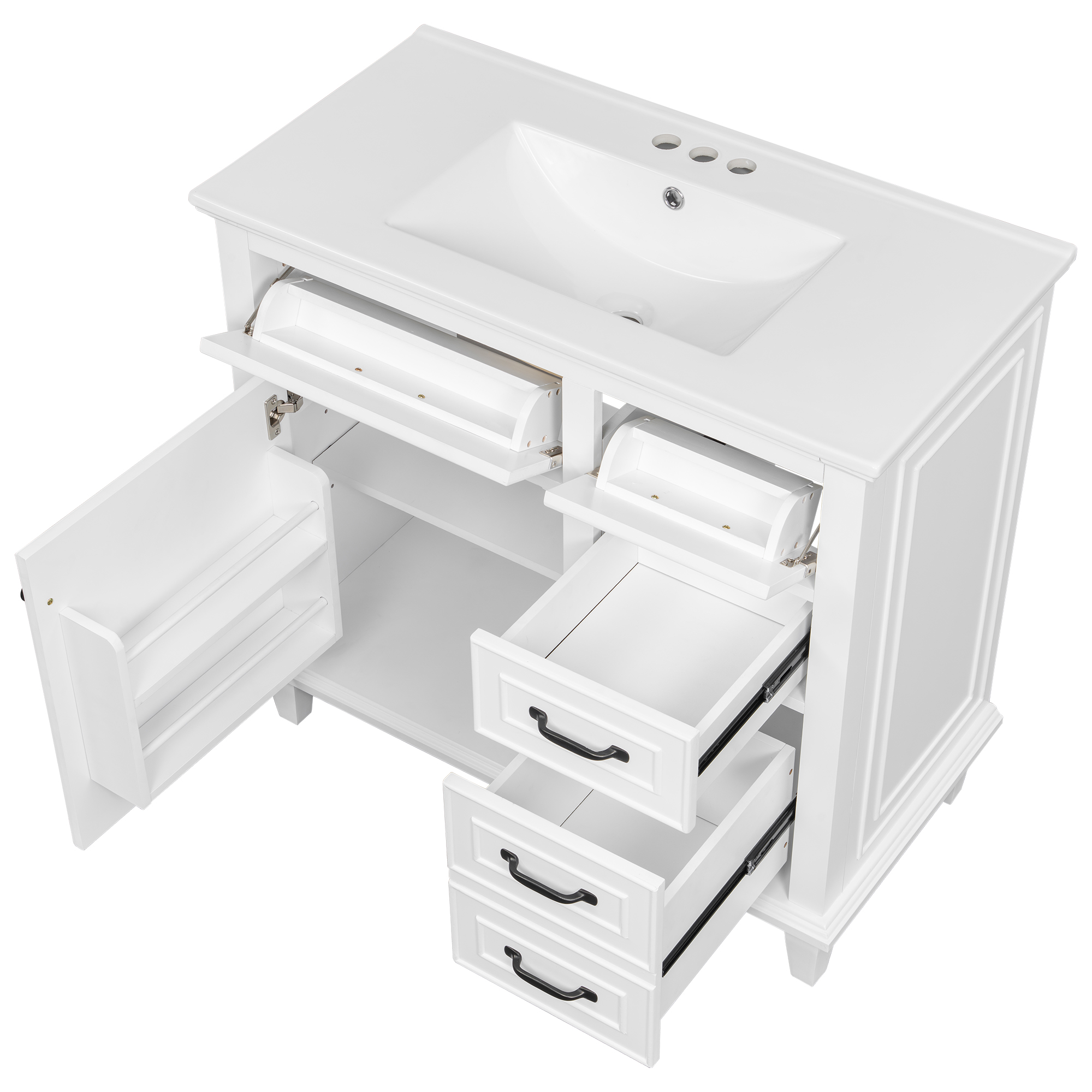 Product Name:36 Inch Bathroom Vanity with Ceramic Sink Top, Solid Wood Frame, MDF & Poplar Cabinet, Flip Drawers, Adjustable Shelf, and Zinc Alloy Handles, Freestanding Storage Cabinet (Faucet Not Included)