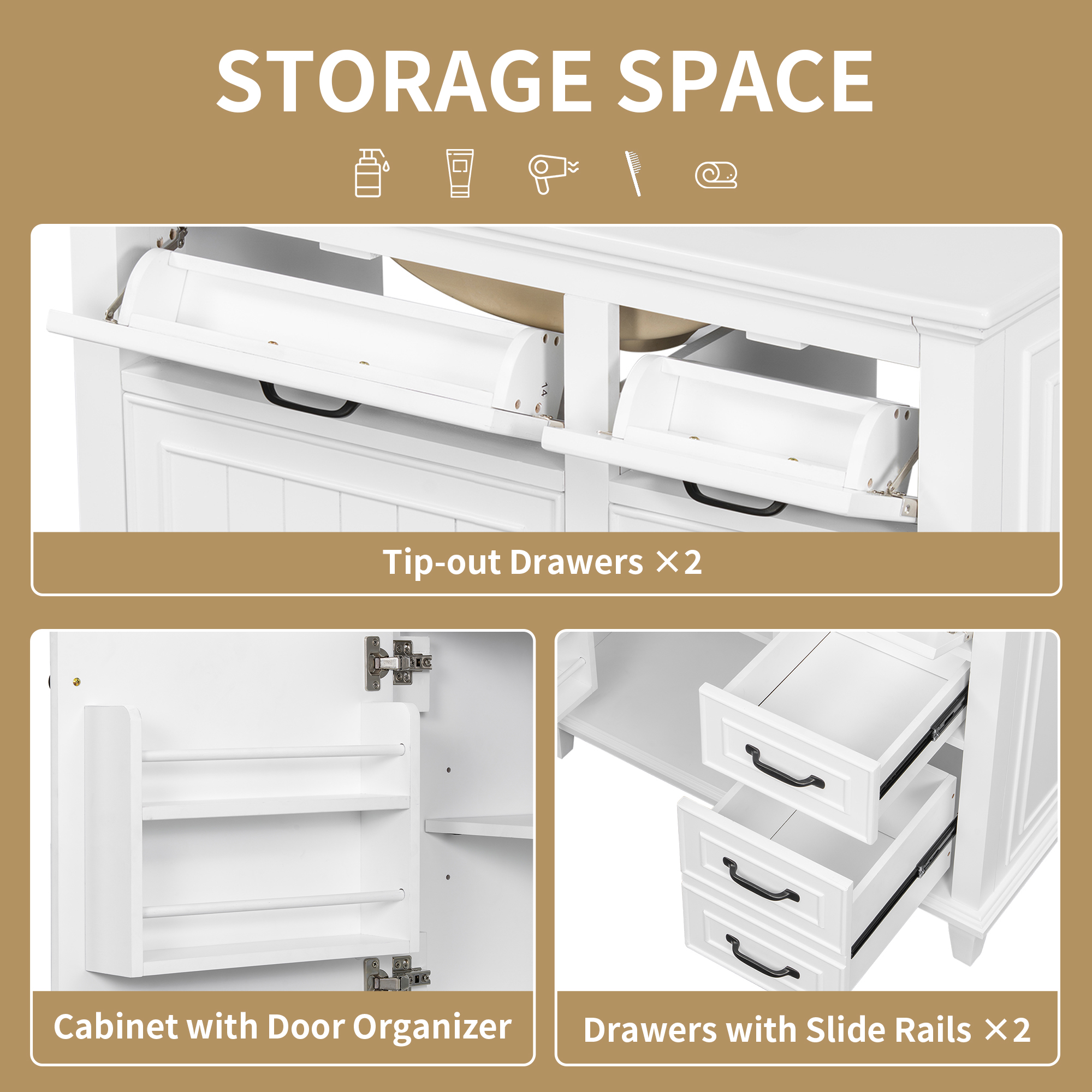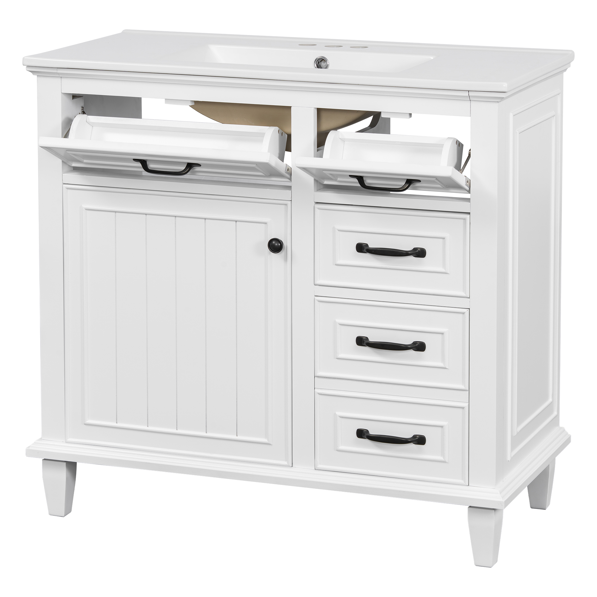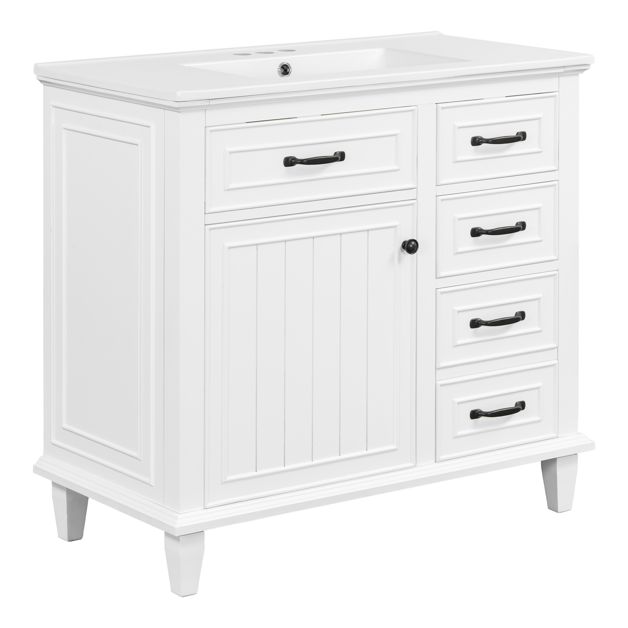 36 Inch Bathroom Vanity With Ceramic Sink Top, Solid Wood Frame, MDF & Poplar Cabinet, Flip Drawers, Adjustable Shelf, And Zinc Alloy Handles, Freestanding Storage Cabinet Faucet Not Included