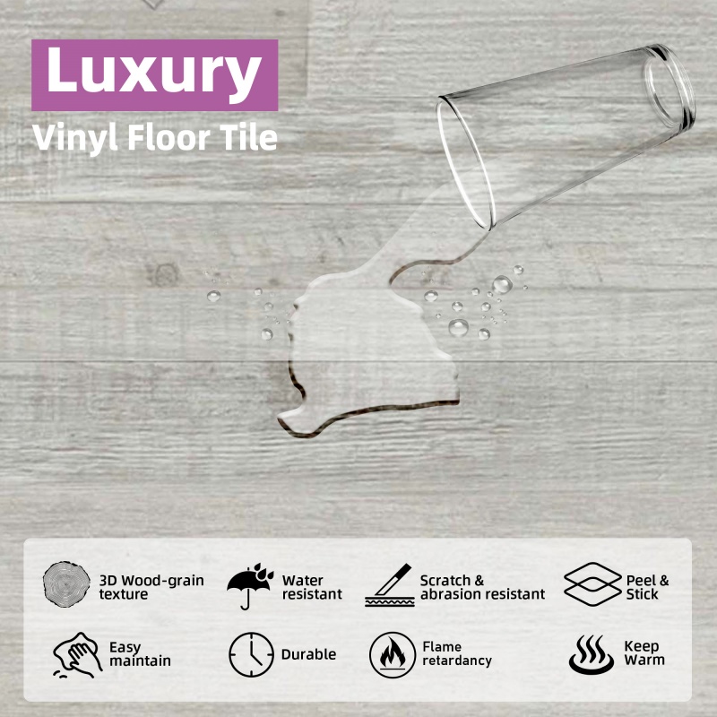 30PCS 12 MIL 6 in. x 36 in. x 1.8mm Vinyl Peel and Stick Flooring Tile, Water Resistant (45 sq.ft.)