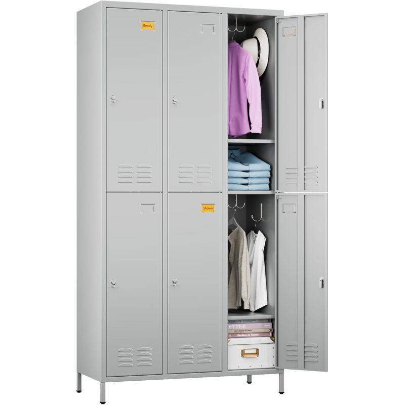 6 Doors Employee Locker With 18 Hooks,Industries Double Tier Metal Locker For School Office Gym Home Employees Staff Sundries Room