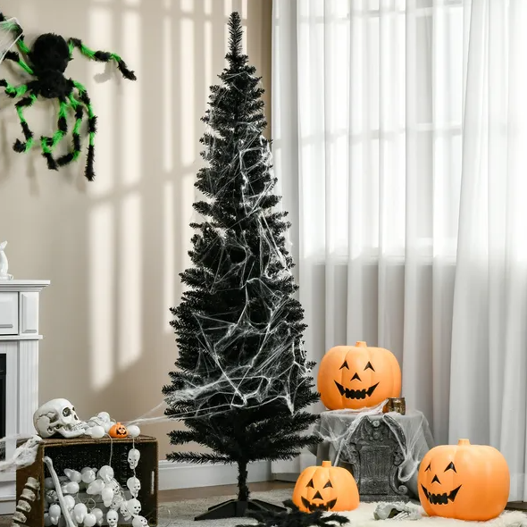 6 ft Artificial Pencil Christmas Tree, Slim Xmas Tree with 390 Realistic Branch Tips and Plastic Stand, Black