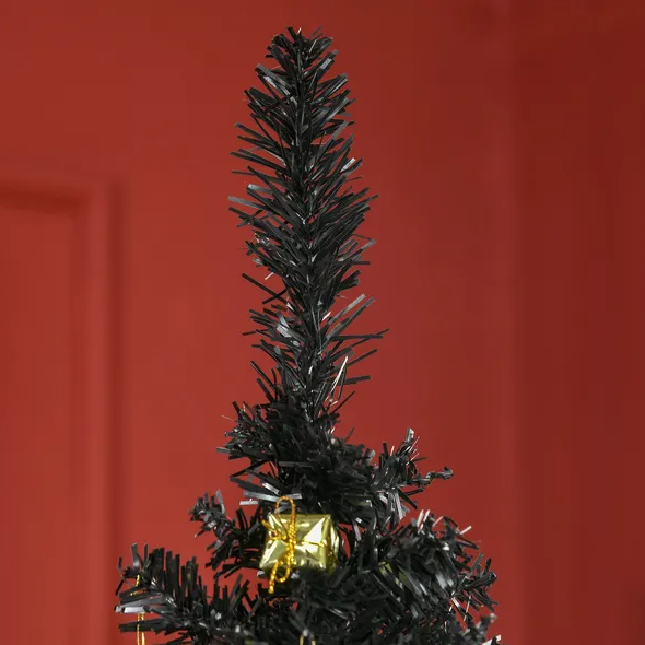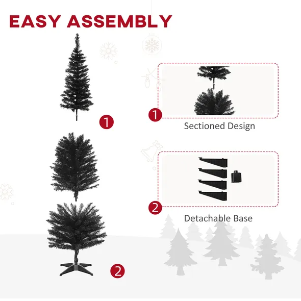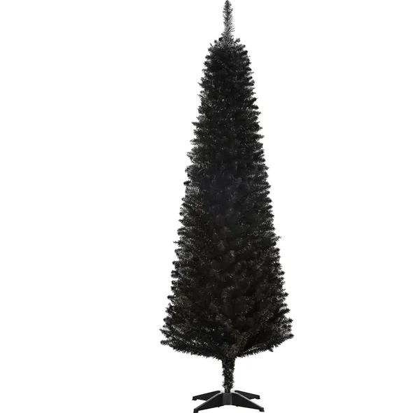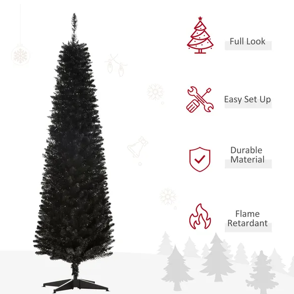 6 Ft Artificial Pencil Christmas Tree, Slim Xmas Tree With 390 Realistic Branch Tips And Plastic Stand, Black