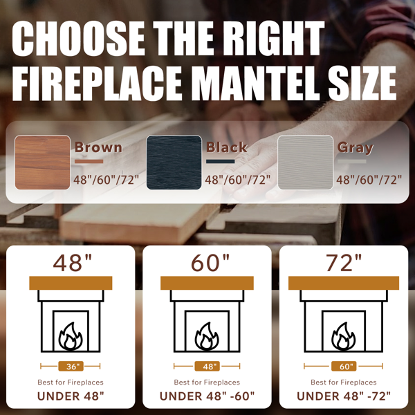 60" Rustic Wood Fireplace Mantel, Wall-Mounted & Floating Shelf for Home Decor