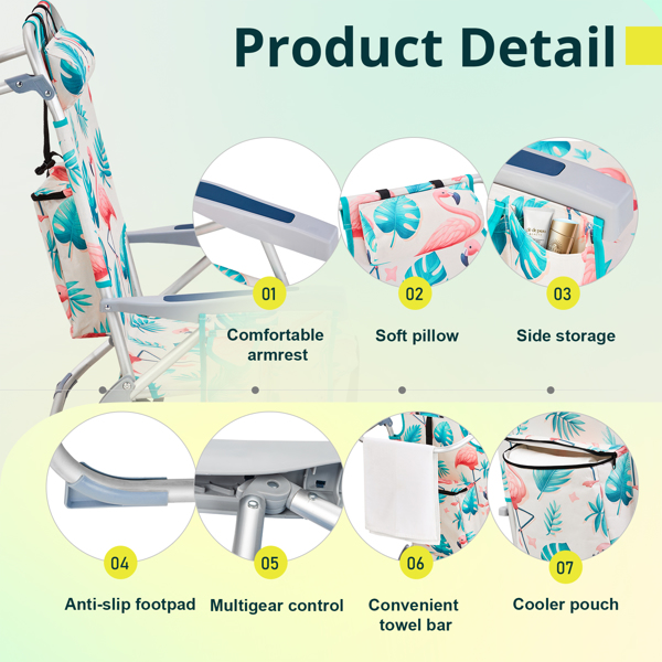 63x65x82cm, Flamingo Motif, Aluminum, Beach Chair, Oxford Cloth
