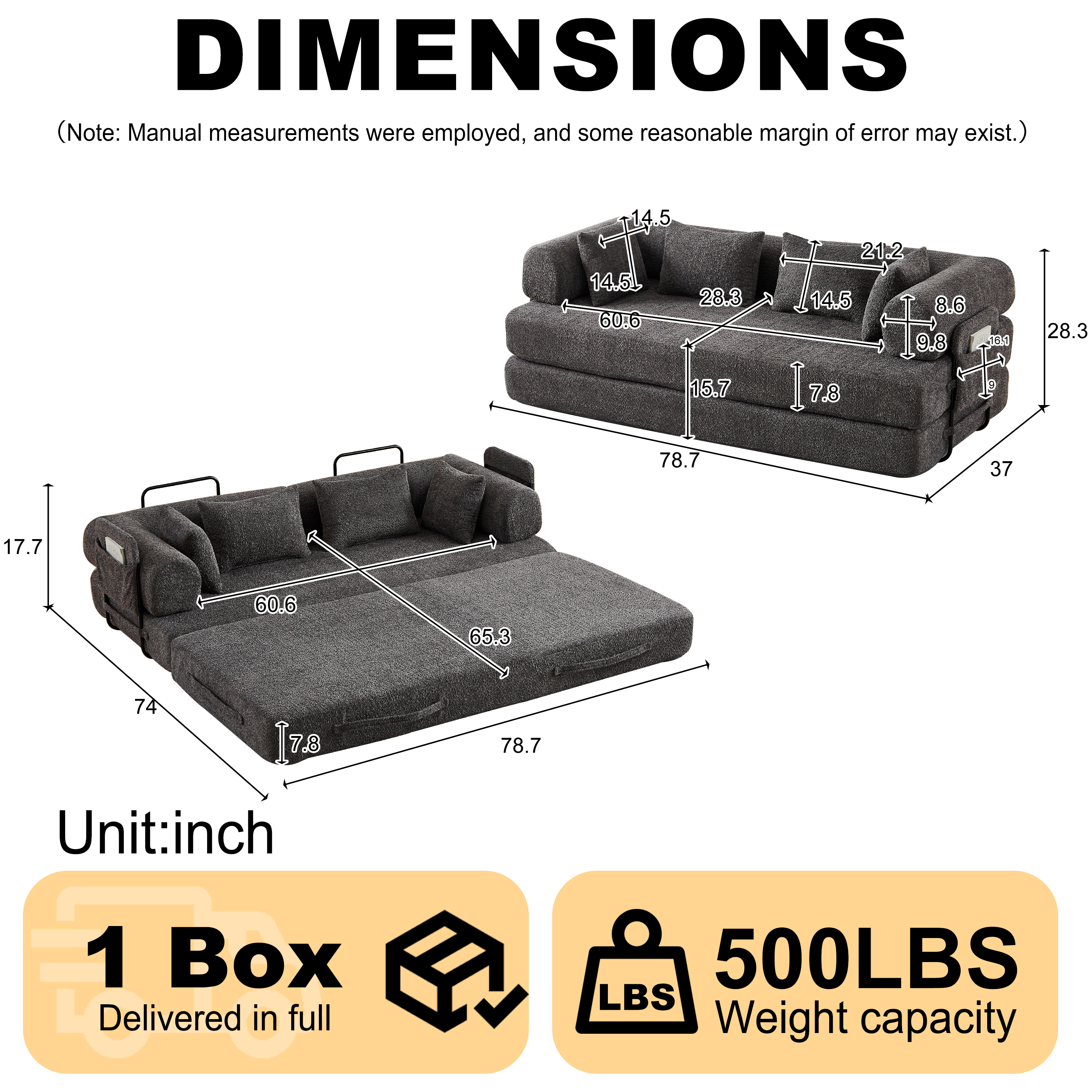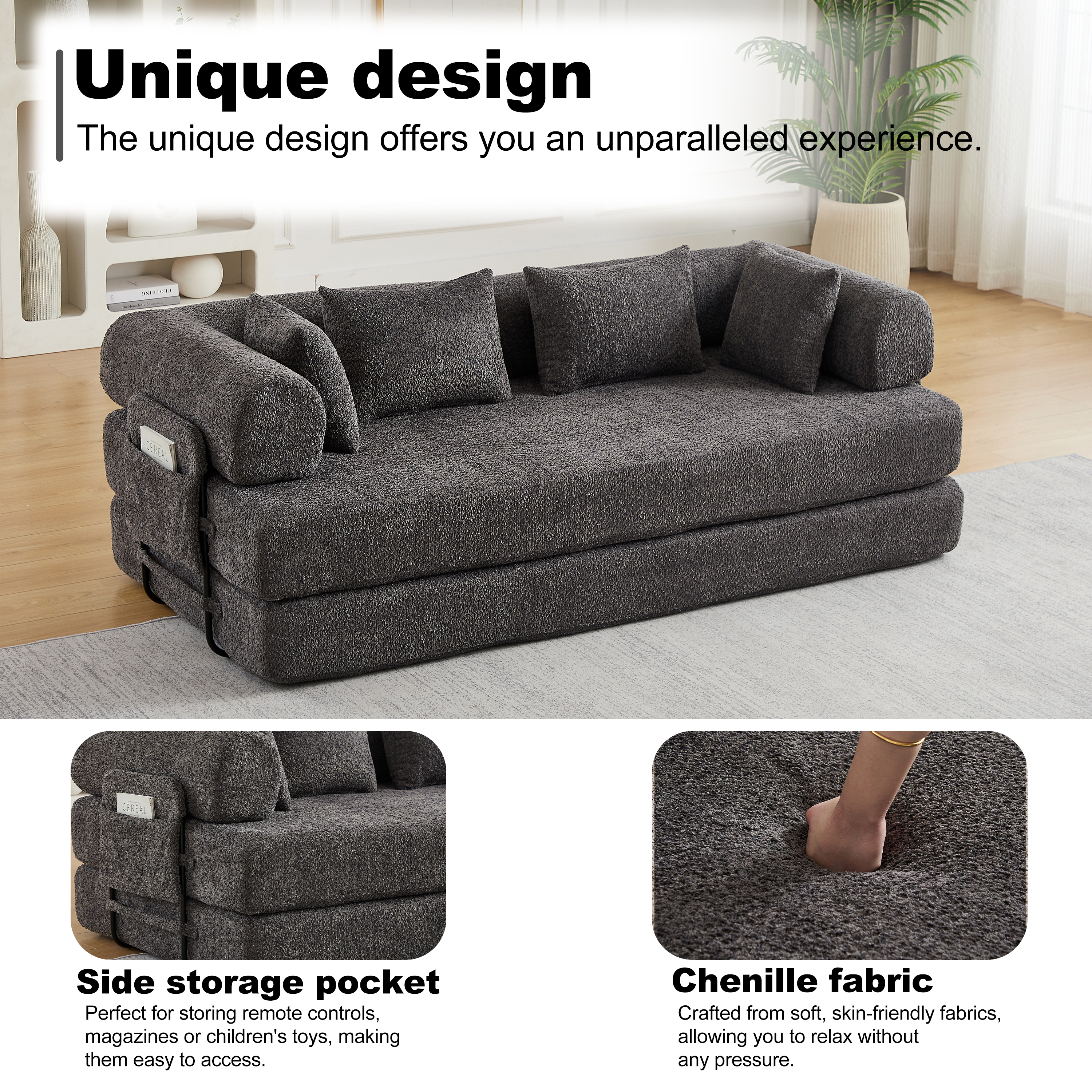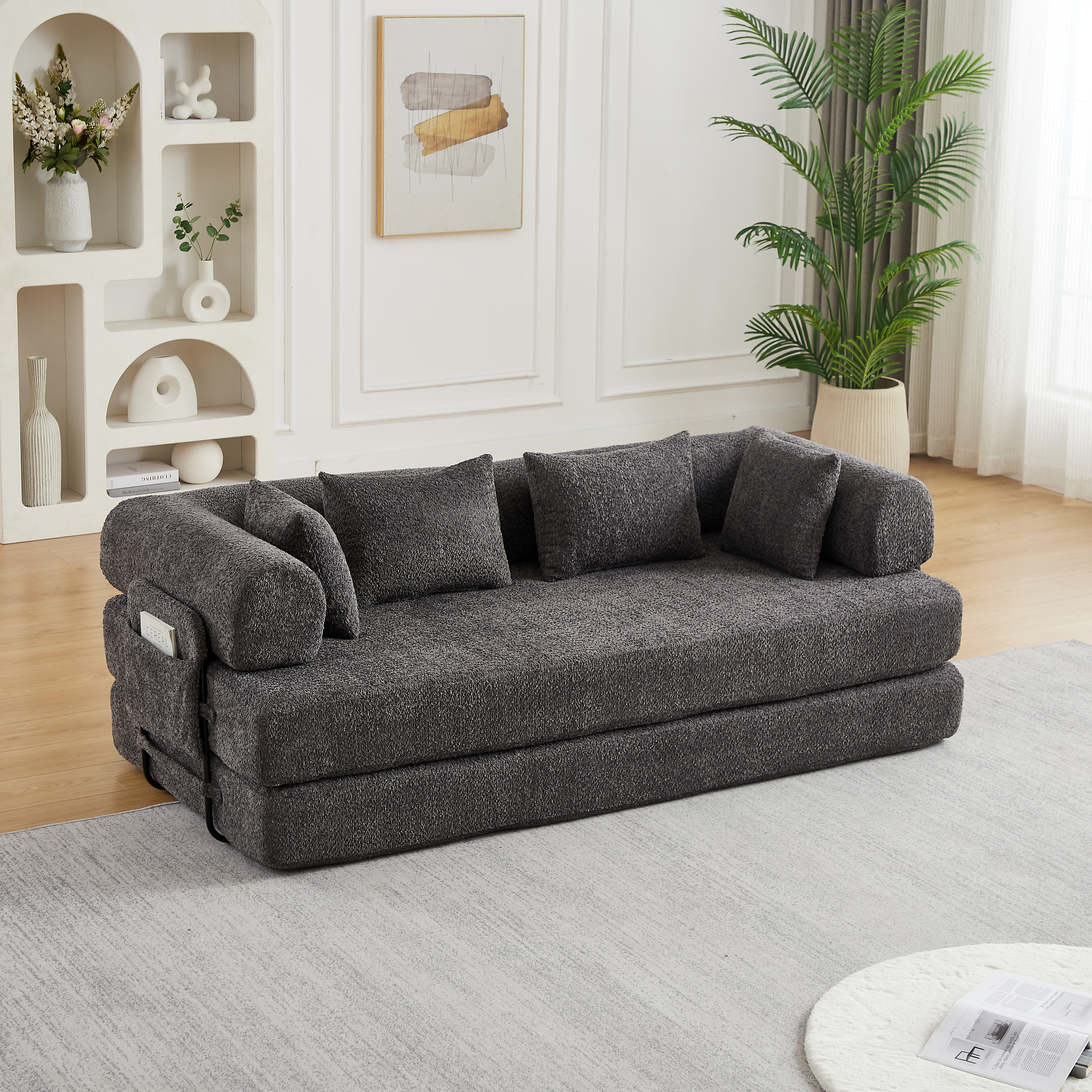 Product Name:78.7-Inch Convertible Sleeper Sofa Bed with Cylindrical Pillow, Chenille Folding Mattress Couch with ,Folding Sofa Bed with Side Pocket, Floor Sofa Lounge Couch for Living Room Bedroom Lounge Studio