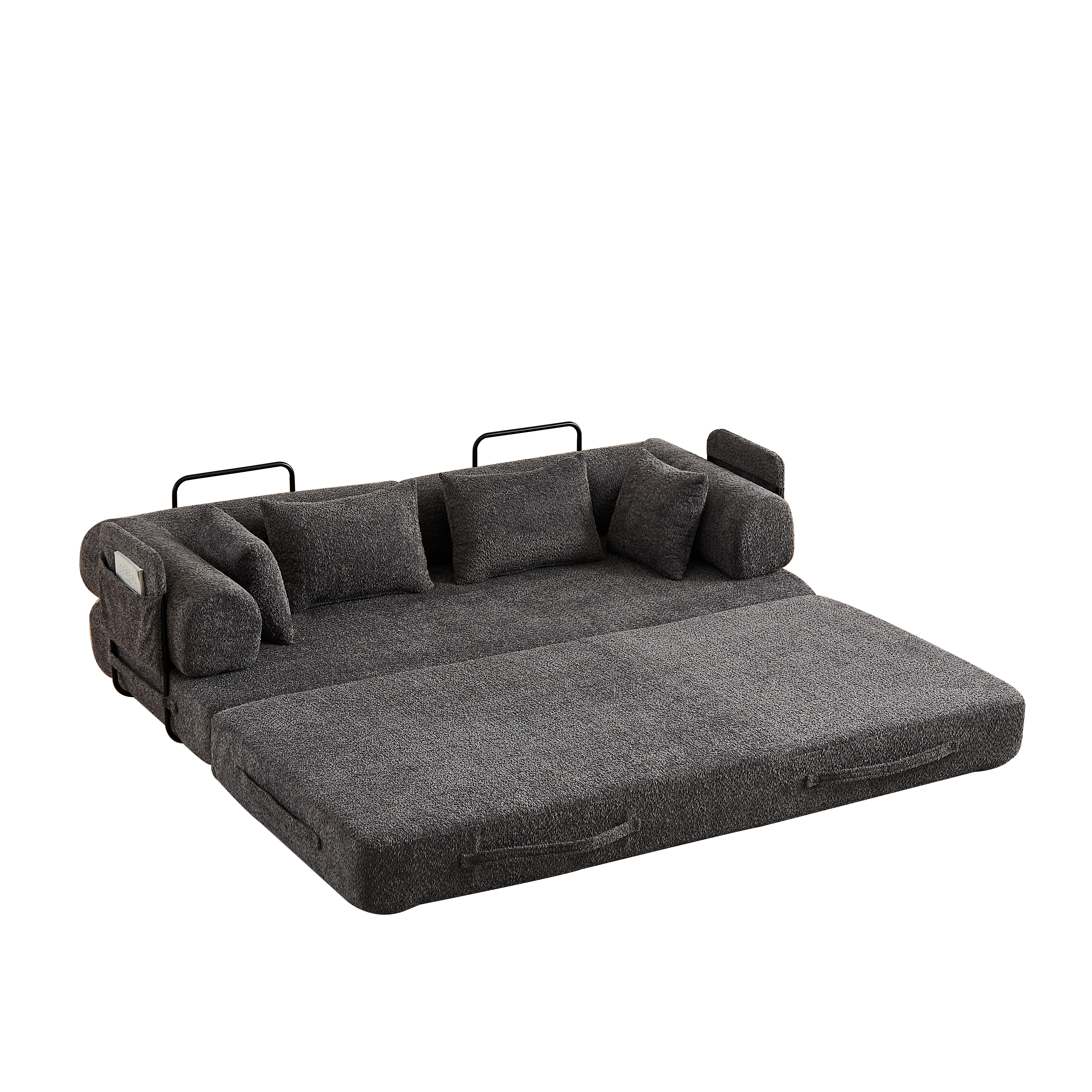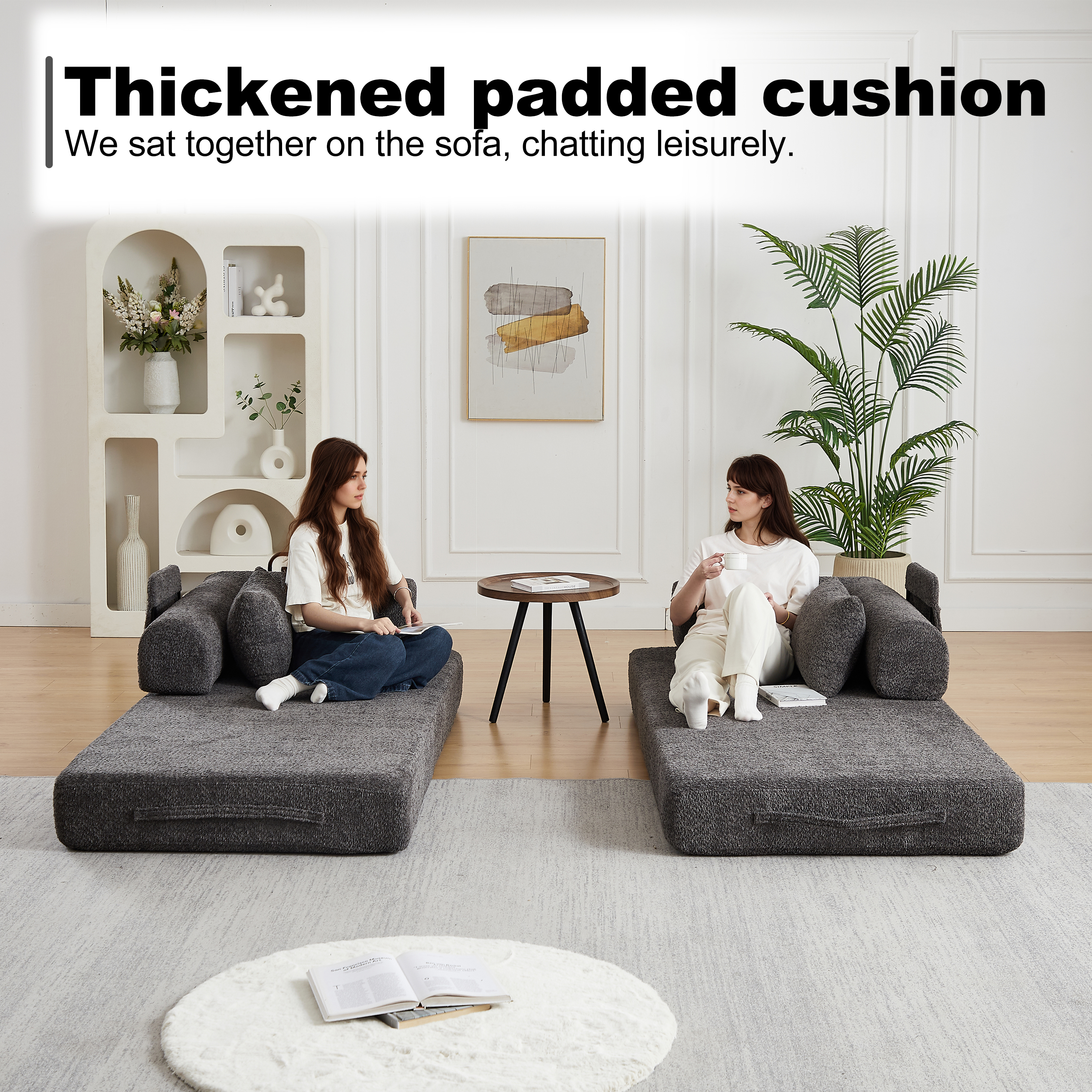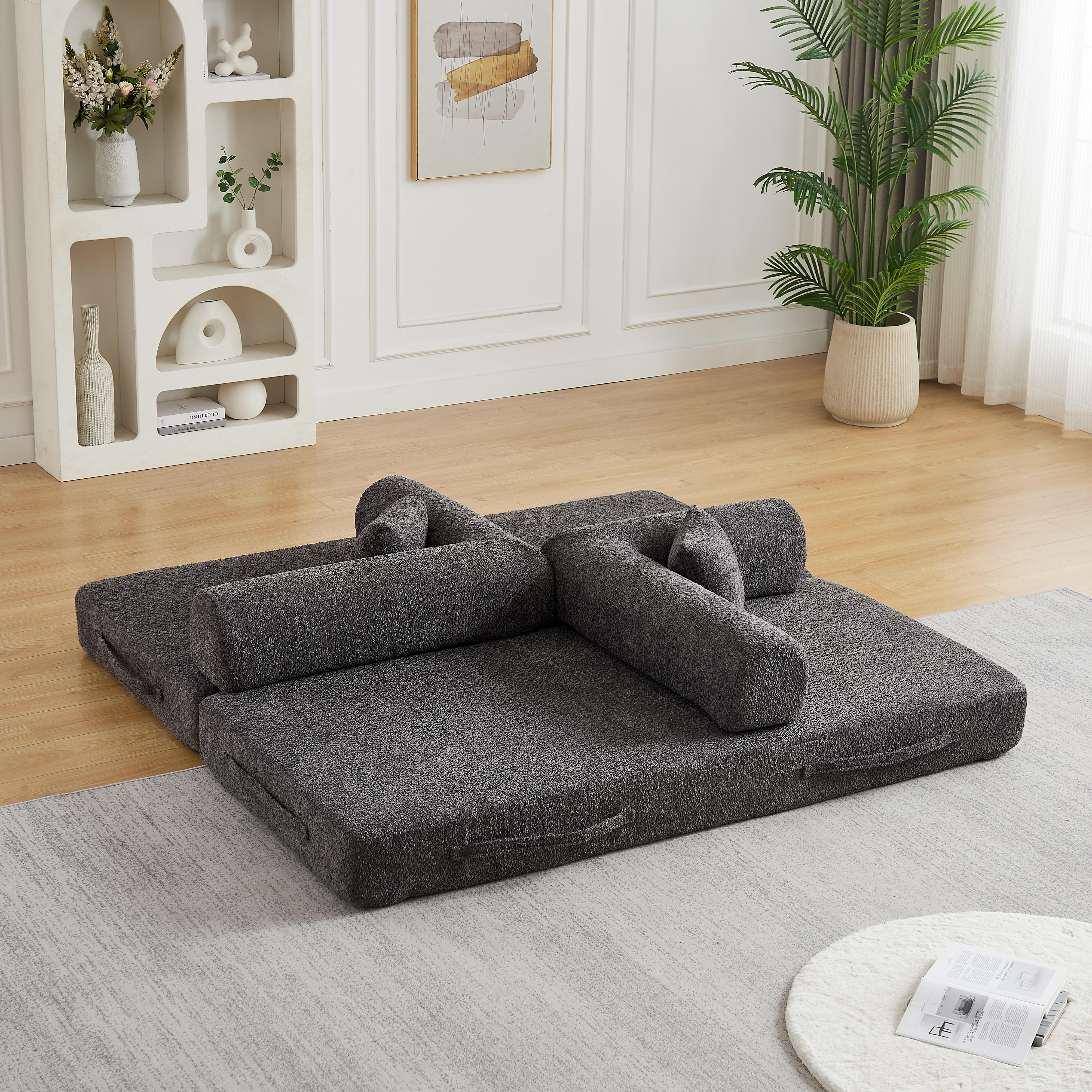 Product Name:78.7-Inch Convertible Sleeper Sofa Bed with Cylindrical Pillow, Chenille Folding Mattress Couch with ,Folding Sofa Bed with Side Pocket, Floor Sofa Lounge Couch for Living Room Bedroom Lounge Studio