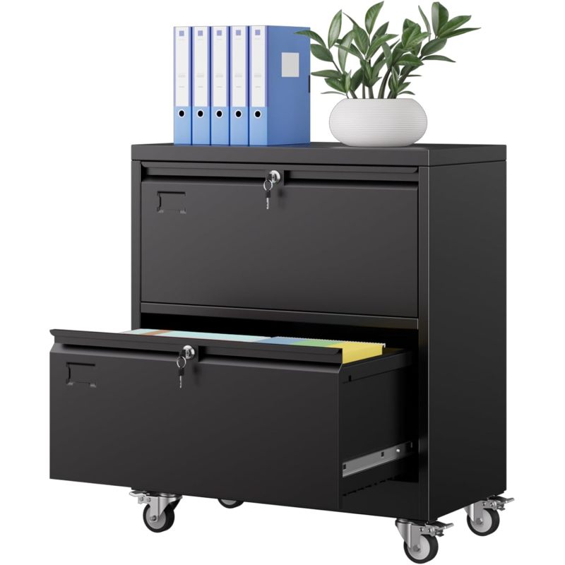Aobabo Metal 2 Drawer Lateral File Mobile Cabinet With 2 Lock, Flie Cabinet With Wheels And Adjustable File Bars For Office,Home, For Letter Legal Size, Black, Assembly Required