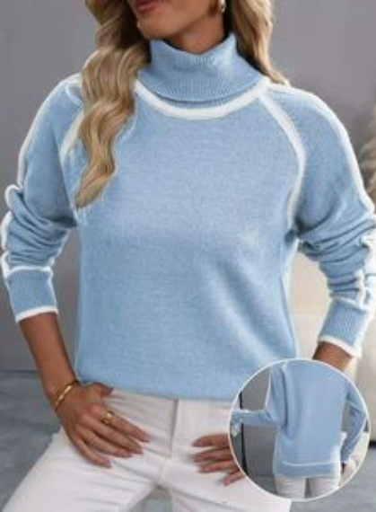 Autumn And Winter Solid Color Color Matching High-necked Casual Women's Clothing Fashion Knit Top Outerwear
