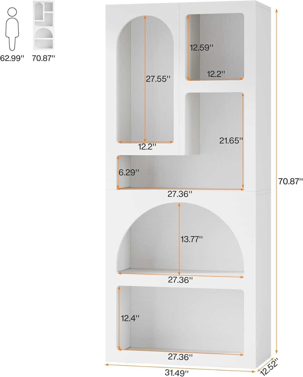 Sufficient Storage: With dimensions of 31.5" W x 12.52" D x 70.87" H, this tall bookcase offers plenty of storage room to organize and display your books, collectibles, and other items. With its 5 versatile different-sized compartments design, you can easily arrange all your daily items of different sizes or heights in this shelf.