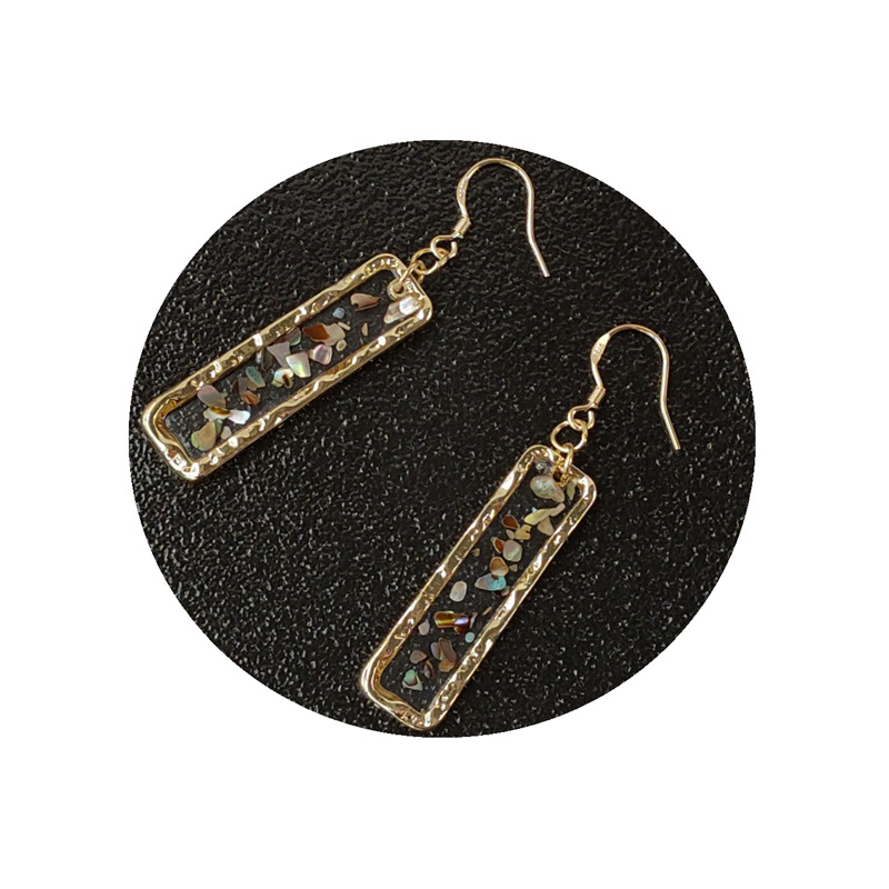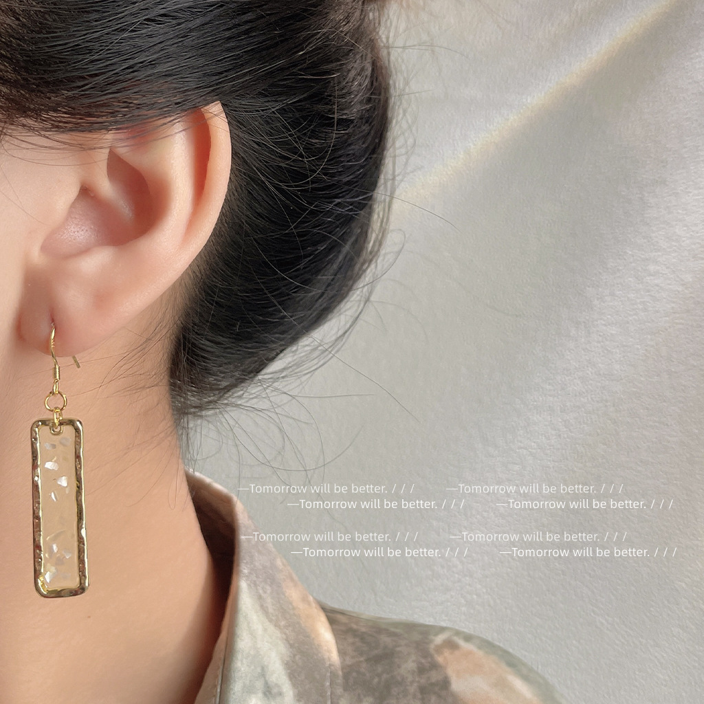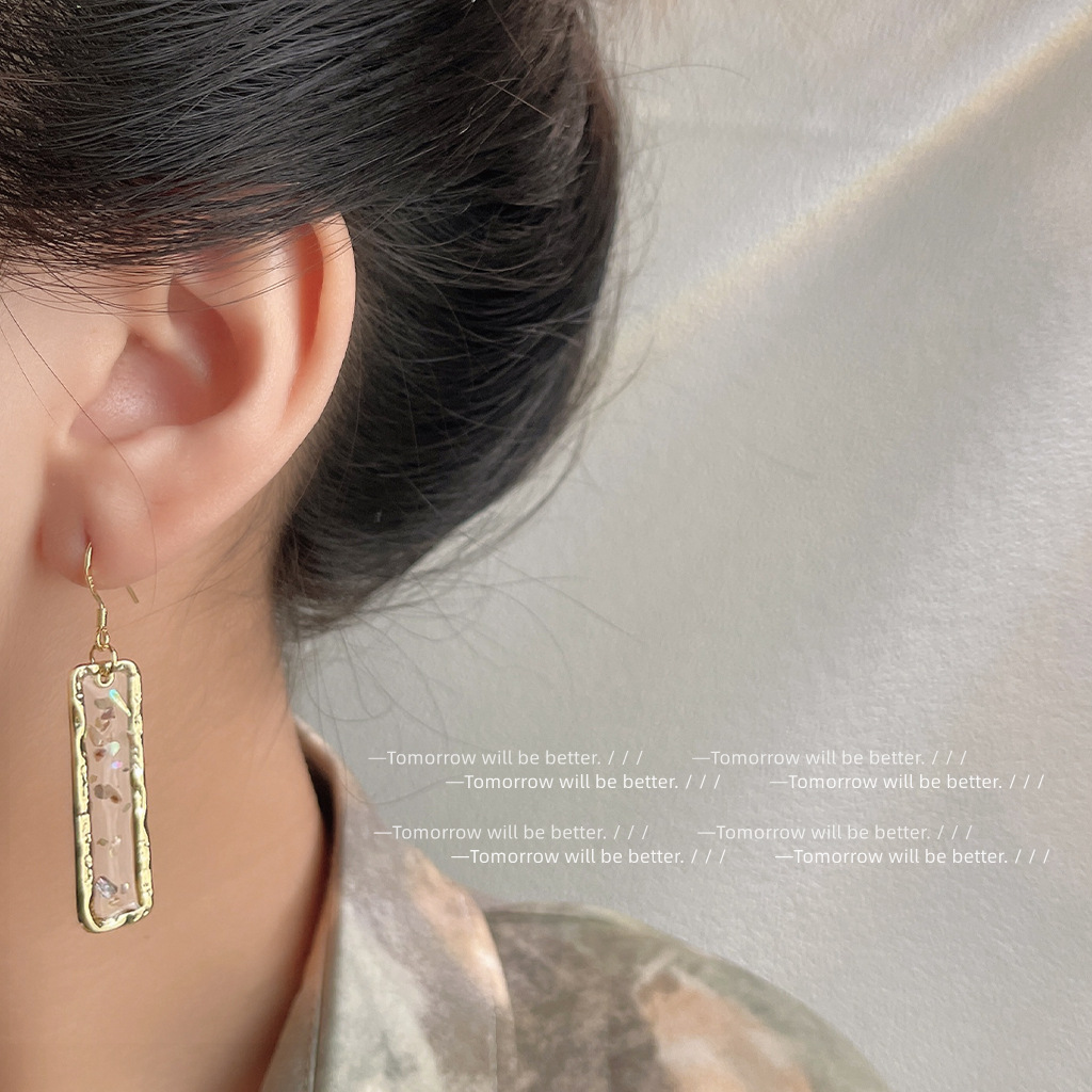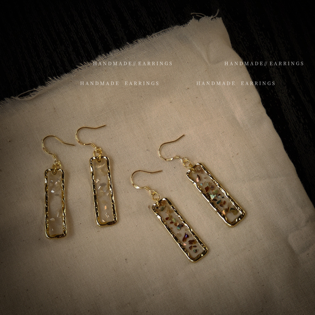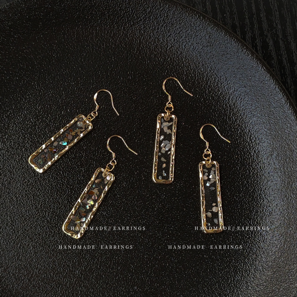 Broken Shell Rectangular Geometric Earrings Handmade Epoxy Face Slimming High Sense