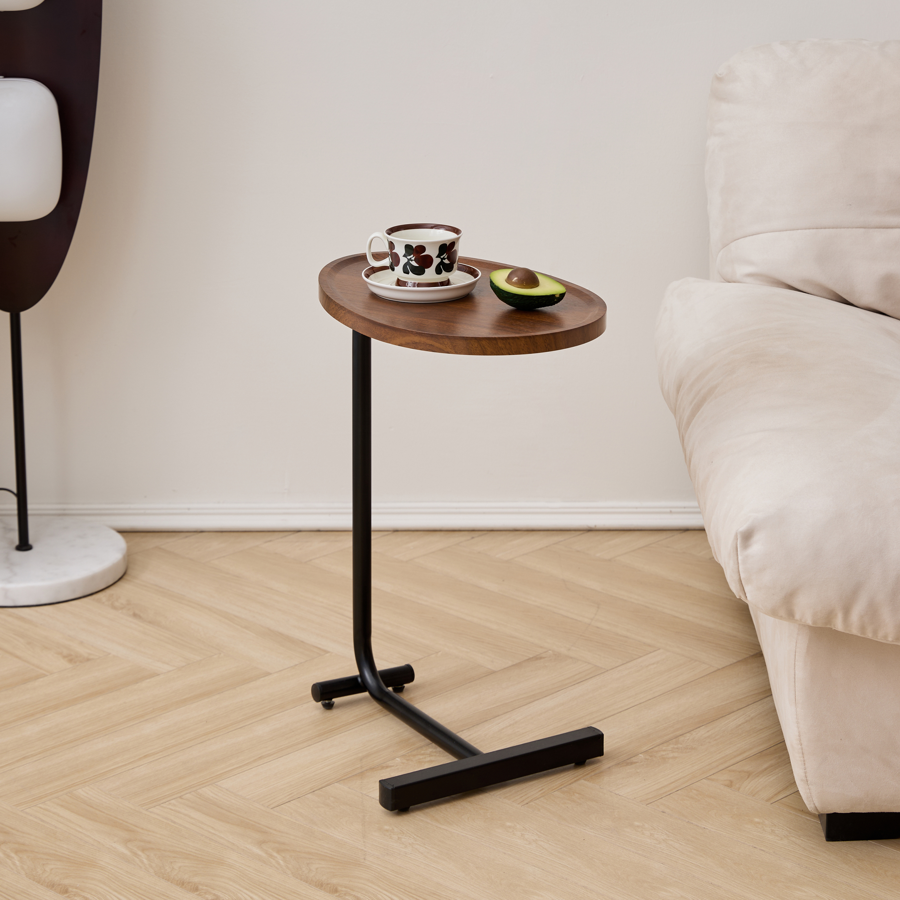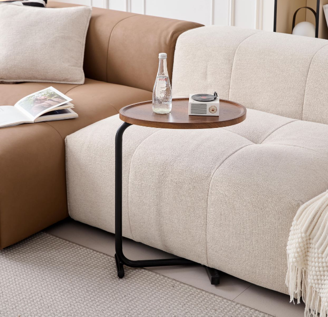 Product Name:Brown C-shaped Side Table, Small Sofa Table for Living room